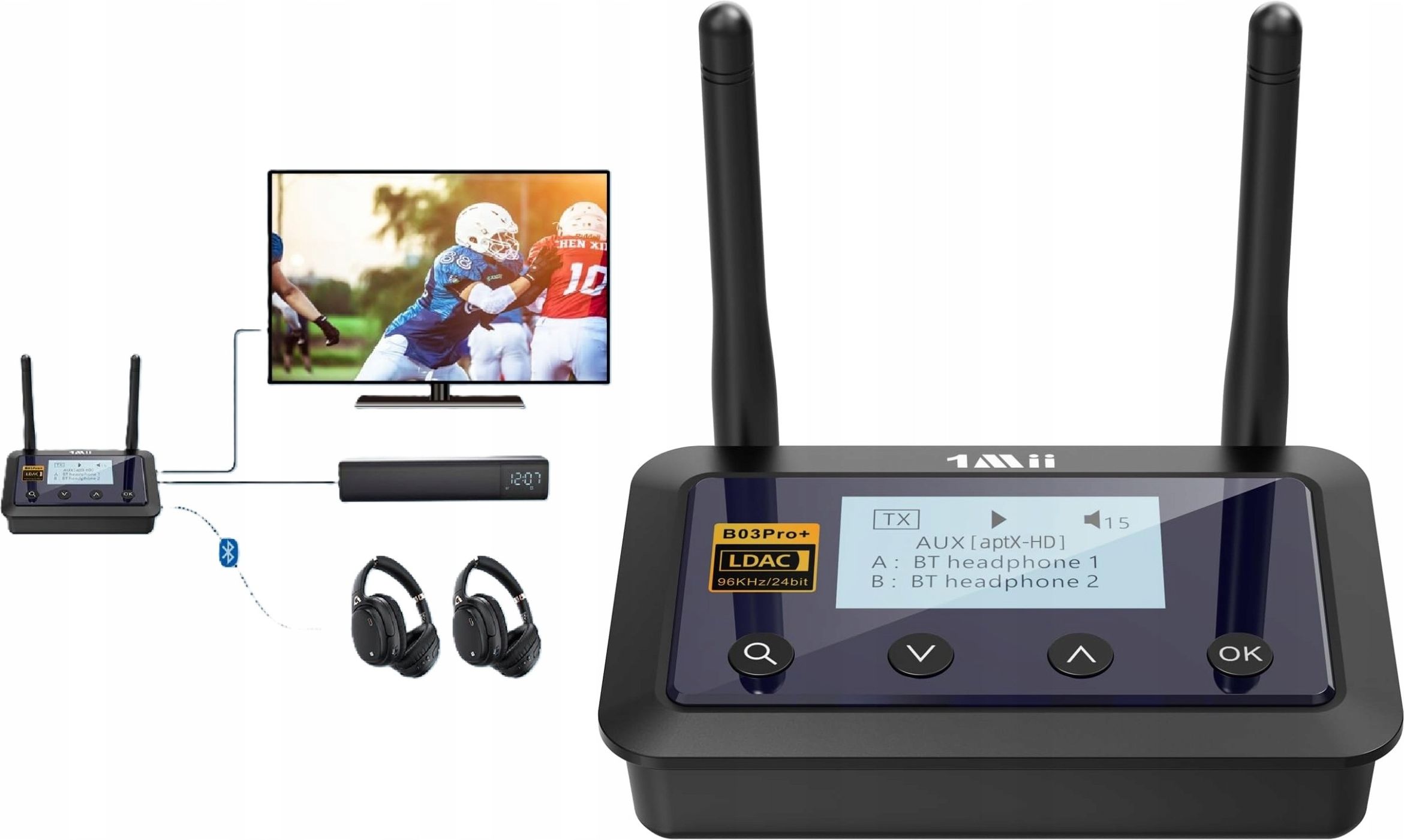 Adapter Bluetooth Nadajnik Na Kilka Urządzeń Zasięg 80m LDAC 24bit j93 RCA Przekształć swój domowy system audio w bezprzewodowe centrum rozrywki najwyższej klasy – zaawansowany adapter 3w1 z obsługą LDAC, ekranem OLED i imponującym zasięgiem, który gwarantuje dźwięk jakości Hi-Fi bez żadnych kompromisów! ✨ Model 1Mii B03Pro+ to potężne narzędzie audio, które łączy w sobie funkcję nadajnika, odbiornika oraz trybu obejścia (Bypass). Dzięki najnowszemu standardowi Bluetooth 5.3 oraz obsłudze elitarnego kodeka LDAC, urządzenie pozwala na bezprzewodowe przesyłanie dźwięku w wysokiej rozdzielczości 24-bit/96kHz – to najwyższy dostępny standard dla technologii Bluetooth. Wyposażenie w czytelny wyświetlacz OLED o przekątnej 1,7" sprawia, że obsługa staje się niezwykle intuicyjna: możesz łatwo podglądać aktywne kodeki, regulować głośność oraz wybierać urządzenia do sparowania bez zgadywania. Urządzenie rozwiązuje problem opóźnień dźwięku dzięki technologii aptX Low Latency, zapewniając idealną synchronizację obrazu z dźwiękiem podczas oglądania filmów. Funkcja Bypass pozwala na jednoczesne przesyłanie sygnału do przewodowego soundbara oraz bezprzewodowych słuchawek, co jest idealnym rozwiązaniem, gdy domownicy potrzebują różnych poziomów głośności. Zewnętrzna antena gwarantuje niespotykany zasięg – do 80 metrów w otwartej przestrzeni – co pozwala cieszyć się muzyką w całym domu bez zakłóceń i przerw w transmisji. Dlaczego warto kupić? ✅ Standard LDAC (TX/RX): Bezprzewodowy dźwięk Hi-Res o najwyższej czystości zarówno przy wysyłaniu, jak i odbieraniu sygnału. ✅ Wyświetlacz OLED: Pełna kontrola nad połączeniami, poziomem głośności i aktywnymi kodekami na jasnym ekranie. ✅ Tryb Dual Link: Możliwość podłączenia dwóch par słuchawek Bluetooth jednocześnie w trybie nadajnika. ✅ Ekstremalny Zasięg: Zewnętrzna antena eliminuje martwe strefy, zapewniając stabilność sygnału w całym mieszkaniu. ✅ Brak Opóźnień: Certyfikat aptX Low Latency eliminuje irytujący efekt braku synchronizacji dźwięku z ruchem ust. Najważniejsze cechy produktu i specyfikacja ➡ Wersja Bluetooth: 5.3 (najwyższa stabilność i energooszczędność). ➡ Obsługiwane kodeki: LDAC, aptX HD, aptX Low Latency, aptX, SBC. ➡ Złącza: Optyczne (Toslink), RCA (Cinch), AUX 3,5 mm. ➡ Ekran: OLED 1,7 cala z panelem informacyjnym. ➡ Zasięg: Do 80 m (na zewnątrz), 20-30 m (wewnątrz budynków). ➡ Funkcje: Nadajnik (TX), Odbiornik (RX), Obejście (Bypass), Regulacja głośności. ➡ Waga: 60 g. Doskonale sprawdzi się jako ➡️ Adapter do nowoczesnego TV: Oglądanie filmów na dwóch parach słuchawek bez przeszkadzania innym domownikom. ➡️ Mostek Hi-Fi: Przesyłanie muzyki w jakości 24-bit z telefonu na klasyczny, wysokiej klasy wzmacniacz. ➡️ Rozwiązanie dla niedosłyszących: Możliwość słuchania głośno na słuchawkach, podczas gdy reszta rodziny korzysta z głośników TV. ➡️ Centrum audio w dużym domu: Stabilne połączenie bez przerywania dźwięku nawet za ścianą. Co w zestawie? ➡️ 1x Nadajnik/Odbiornik Bluetooth ➡️ 1x Kabel optyczny (Toslink) ➡️ 1x Kabel audio 3,5 mm na RCA ➡️ 1x Kabel audio 3,5 mm ➡️ 1x Kabel zasilający USB Zamów już dziś i odkryj wygodę bezprzewodowego dźwięku klasy premium z adapterem 1Mii B03Pro+, który połączy Twoje wszystkie urządzenia audio w jeden, doskonale brzmiący system! ✨