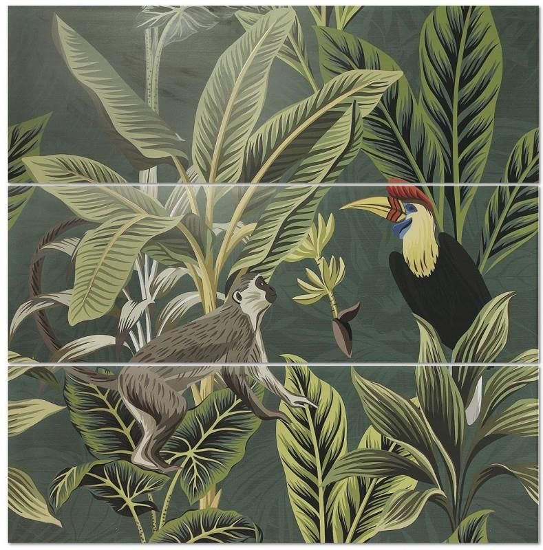 Opis produktu Uwaga! W obrębie jednego wzoru znajdują się 3 płytki sprzedawane w komplecie. W opakowaniu jest 1.44 m2. Decor DEF Toucan Green to matowe płytki dekoracyjne w formacie 40x120. Motywy roślinne oraz zwierzęce zabiorą nas w świat dżungli. Ich oryginalny wygląd ożywi każde wnętrze oraz doda mu wyrazu i charakteru. Rektyfikowane brzegi umożliwią zastosowanie minimalnej fugi, co zwiększy atrakcyjność całej kompozycji.