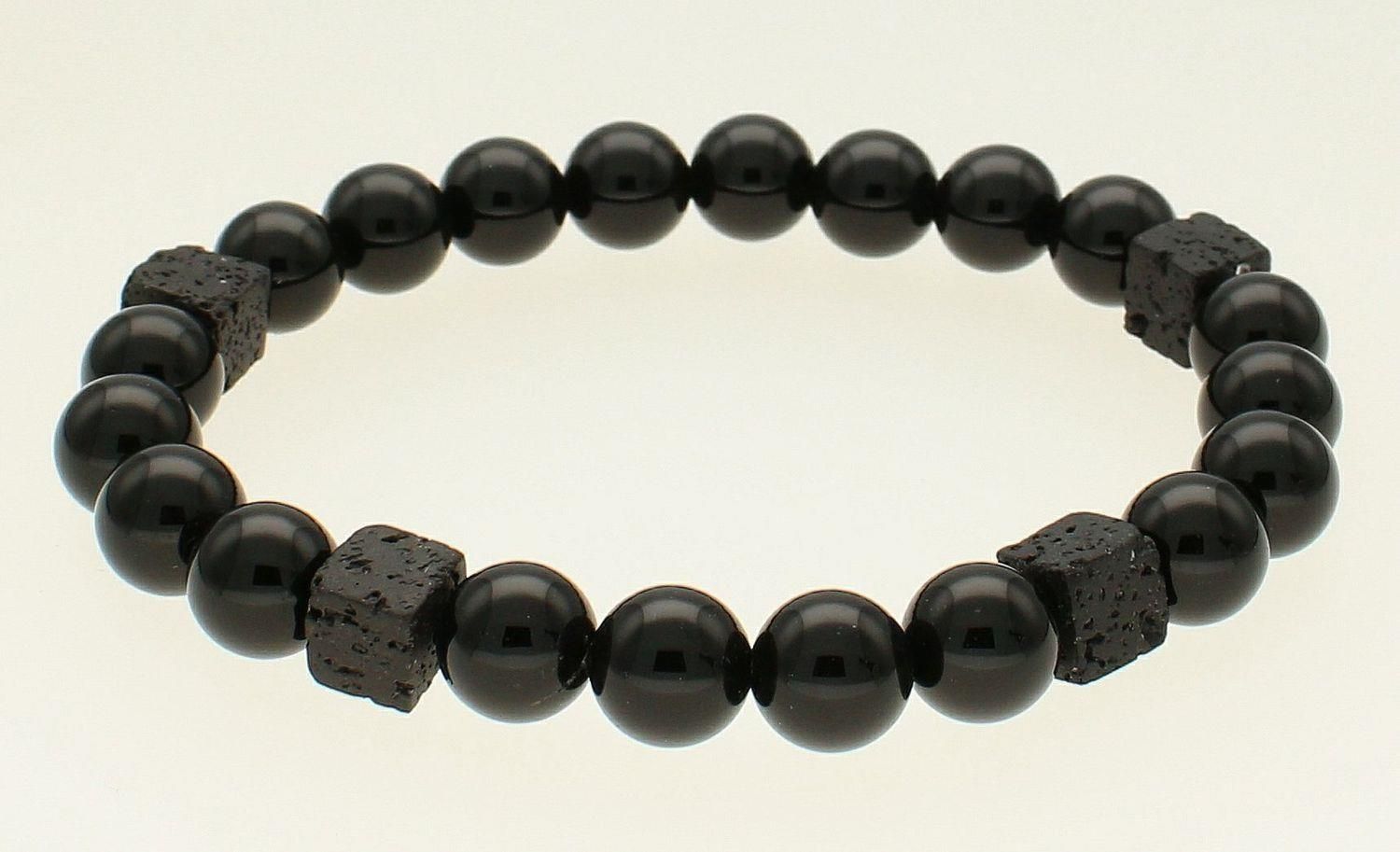 Bransoletka męska z kamieniami naturalnymi lawa wulkaniczna, onyks. Bransoletka wykonana z kamieni naturalnych. Idealny pomysł na prezent dla każdego mężczyzny. Bransoletka z kamieniami naturalnymi lawa wulkaniczna i onyks o oryginalnej formie będzie idealnym prezentem dla mężczyzny. Bransoletka z kamieniami męska na gumce, dzięki czemu bransoletka dopasowuje się na każdy nadgarstek męski. Bransoletki dla mężczyzn to biżuteria lubiana przez wiele mężczyzn. Bransoletki mogą być ozdobione różnym wzorem bądź grawerem dzięki czemu będzie idealnym pomysłem na prezent. Świetny dodatek do codziennego ubioru dla mężczyzn lubiących wygodę oraz oryginalne męskie dodatki. Noś ją samą lub stwórz swoją własną kompozycję, łącząc bransoletkę z bransoletkami skórzanymi. Lawa wulkaniczna ma właściwości skupiania negatywnej energii i zamieniania jej na pozytywną. Transformuje nie tylko osobę, ale również jej otoczenie. Stymuluje również łagodny przepływ energii, który uzdrawiająco wpływa na ciało, umysł oraz ducha. Nasyca pasją i miłością. Onyks ochrania przed negatywą energią, psychicznymi atakami i niekorzystnymi wpływami. Nadaje się dla ludzi osłabionych, ze skłonnością do irytacji - pozwala uwolnić się od niekorzystnych emocji, takich jak cierpienie, żal czy smutek. Onyks jest również przydatny przy pozbywaniu się uczucia osamotnienia i izolacji.