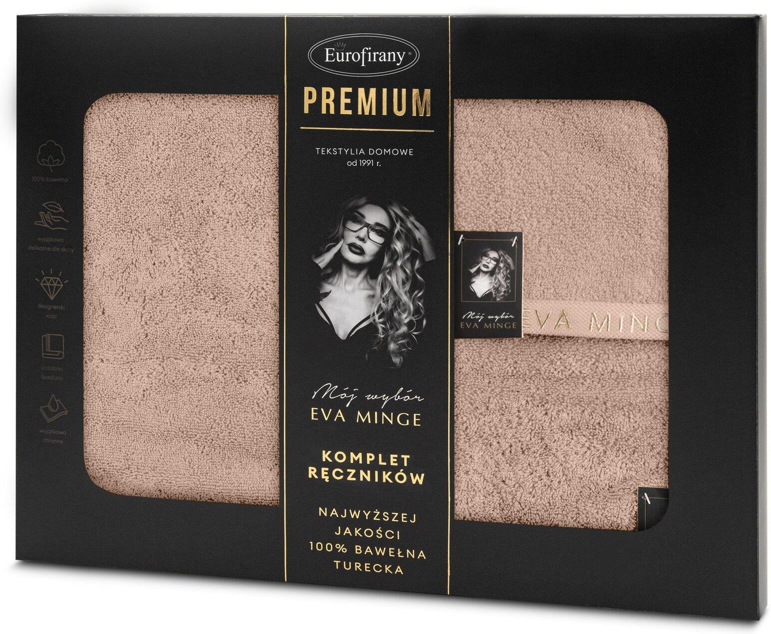 Eurofirany Komplet Ręczników Venus Eva Minge Ciemny Puder Zdobione Bordiurą W Kolorze Ręcznika Z Napisami Projektantki Z Kolekcji Premium (EF464432) Ślesin