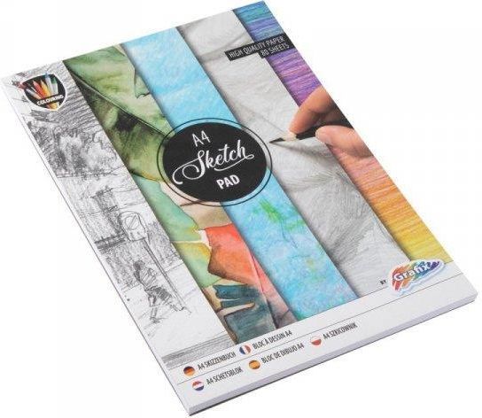 Szkicownik zawiera 80 kartek papieru wysokiej jakości w formacie A4. Z pewnością przyda się produkt do szkoły na zajęcia plastyczne. Idealnie również sprawdzi się jako prezent dla młodych artystów. Wymiary: 300x210 mm Grupa wiekowa: 3+