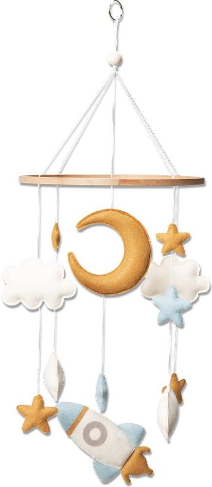 Mobil wykonany jest w 100% z bawełny organicznej i będzie wyglądał jak marzenie w pokoju dziecięcym. Aby uniknąć splątania, związaliśmy niektóre sznurki razem, upewnij się, że przeciąłeś właściwy sznurek.