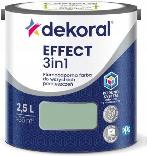 Dekoral Effect 3w1 Plamoodporna miętowo-szary 2,5l Dekoral Effect 3w1 Plamoodporna miętowo-szary 2,5l Dekoral EFFECT 3in1 Plamoodporna farba do wszystkich pomieszczeń _ ✅ Pojemność: 2,5L ✅ Wydajność: 14m2/l ✅ Kolor: zielony butelkowy - Najważniejsze cechy Odporna na zmywanie i szorowanie - bez …