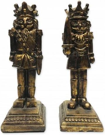 Figurka świąteczna dziadek do orzechów Figurka świąteczna w kształcie dziadka do orzechów idealnie wpasuje się w świąteczny klimat. Stanowi oryginalne uzupełnienie wystroju. Dekoracja nada się jako element kompozycji lub samodzielna ozdoba. Można ustawić ją w dowolnym miejscu w mieszkaniu tak by przykuła uwagę zarówno domowników jak i gości. Wykonana z wysokiej jakości drewna pokrytego złotym kolorem. Produkt dostępny w dwóch wzorach. Wysyłany losowy wzór - dostępny w magazynie. Parametry: Marka: Werner Voss Wysokość: 22 cm Szerokość podstawy: 7 cm Materiał wykonania: drewno Kolor dominujący: złoty
