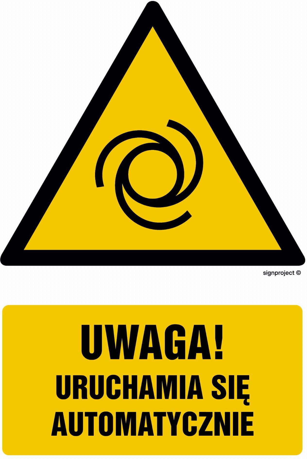 Nazwa znaku GF034 Uwaga! Uruchamia się automatycznie Zalety produktu trwały i czytelny – wykonany z materiałów najwyższej jakości i odpornych na upływ czasu, gwarantujących widoczność przez lata. możliwość dostosowania do każdego środowiska – różne środowiska mogą wymagać różnych rozwiązań. Dzięki możliwości druku na różnorodnych materiałach, znak można dostosować do specyfiki danego miejsca, co zwiększa jego skuteczność i użyteczność. Oferujemy wydruk na: FN - folii samoprzylepnej, FS - folii samoprzylepnej fotoluminescencyjnej, PN - płycie PCV, PS - płycie PCV fotoluminescencyjnej, TN - płycie sztywnej w systemie TD, TD - płycie sztywnej w systemie TD fotoluminescencyjnej, KN - folii podłogowej, KS - folii podłogowej fotoluminescencyjnej. łatwy montaż - znak można bez trudu zamontować na wielu rodzajach powierzchni, co pozwala na jego uniwersalne zastosowanie. Każda tabliczka posiada w narożnikach montażową taśmę dwustronną. Umieszczanie w firmie znaków ostrzegawczych z opisem odgrywa istotną rolę w ochronie zdrowia i życia pracowników oraz w zapewnieniu sprawnego funkcjonowania przedsiębiorstwa. Znaki te charakteryzują się żółtym trójkątnym tłem z czarnym obramowaniem oraz wyraźnym piktogramem ilustrującym dane zagrożenie, a dodatkowo zawierają opis słowny precyzujący rodzaj niebezpieczeństwa. Takie połączenie grafiki z tekstem zwiększa czytelność i zrozumiałość komunikatu, umożliwiając pracownikom szybkie rozpoznanie potencjalnych zagrożeń i podjęcie odpowiednich środków ostrożności. Obecność opisu eliminuje ewentualne niejasności wynikające z samego symbolu, co jest szczególnie istotne w przypadku nowych pracowników. Dzięki temu znaki ostrzegawcze nie tylko informują o istniejących niebezpieczeństwach, ale również edukują personel, promując kulturę bezpieczeństwa i odpowiedzialności w miejscu pracy.