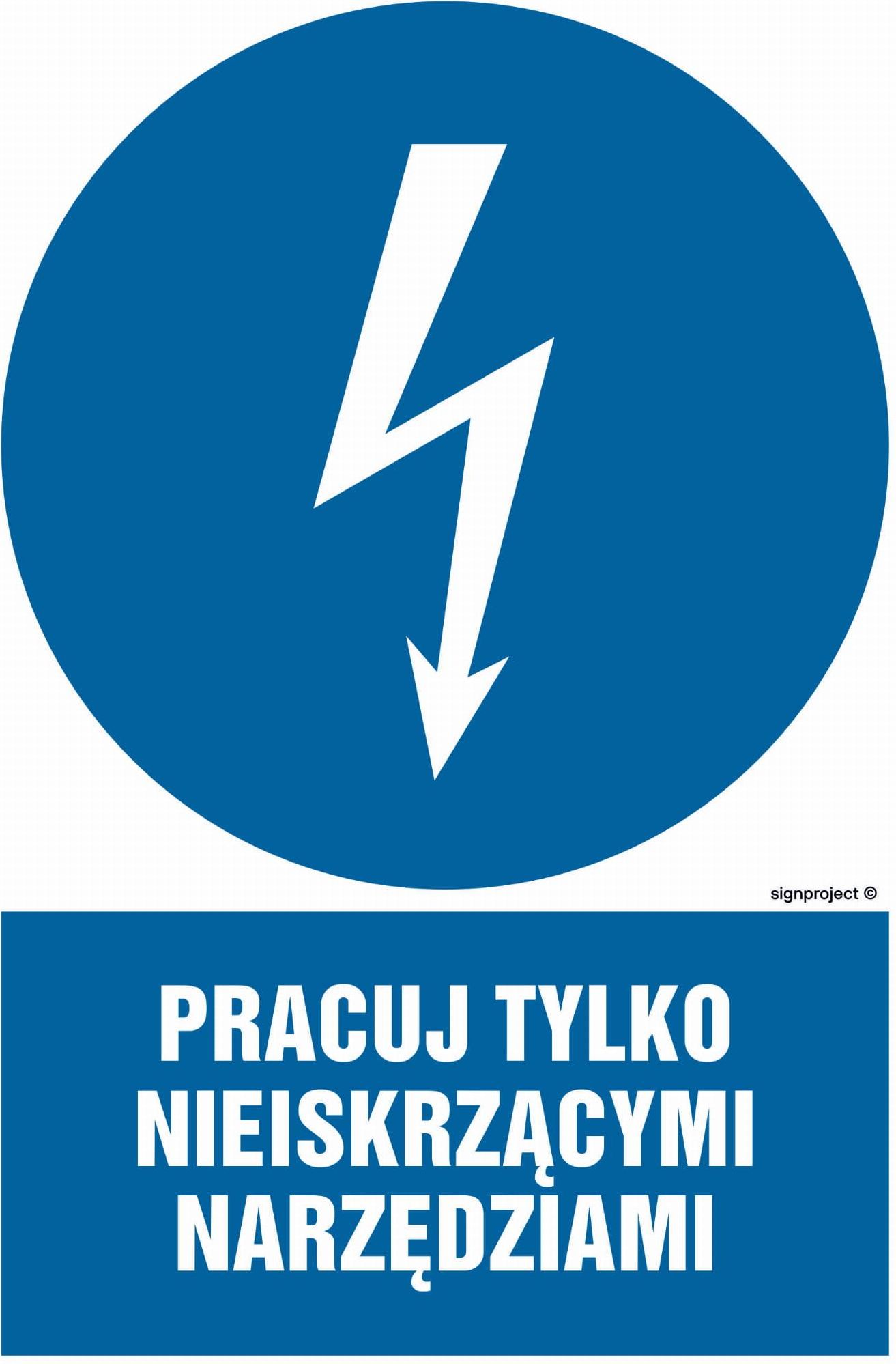 Nazwa tablicy HE012 Pracuj tylko nieiskrzącymi narzędziami Zalety produktu trwała i czytelna – wykonana z materiałów najwyższej jakości i odpornych na upływ czasu, gwarantujących widoczność przez lata. możliwość dostosowania do każdego środowiska – różne środowiska mogą wymagać różnych rozwiązań. Dzięki możliwości druku na różnorodnych materiałach, tablicę można dostosować do specyfiki danego miejsca, co zwiększa jej skuteczność i użyteczność. Oferujemy wydruk na: FN - folii samoprzylepnej, PN - płycie PCV. łatwy montaż - tablicę można bez trudu zamontować na wielu rodzajach powierzchni, co pozwala na jej uniwersalne zastosowanie. Każda tablica posiada w narożnikach montażową taśmę dwustronną. Największą zaletą tablic nakazu jest jasne i jednoznaczne informowanie o koniecznych działaniach, które należy podjąć w celu uniknięcia zagrożeń związanych z elektrycznością. Tablice te przypominają pracownikom o obowiązkowych procedurach, co minimalizuje ryzyko wypadków i zapewnia bezpieczne środowisko pracy. Tablice nakazu mają charakterystyczne niebieskie tło z białymi symbolami i tekstem, co zapewnia ich wysoką widoczność. Dzięki zastosowaniu standardowych kolorów i symboli, znaki nakazu te są łatwo rozpoznawalne i zrozumiałe dla wszystkich pracowników.