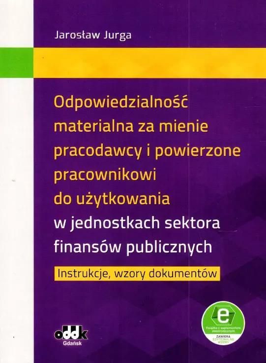 Odpowiedzialność materialna za mienie pracodawcy i powierzone pracownikowi do użytkowania w jednostkach sektora finansów publicznych Autor: Jurga Jarosław Język: polski Wydawca: ODDK Format: 16.0x23.0cm Stron: 80 Oprawa: Miękka Waga: 0.145 Rok: 2024 ISBN: 9788382530421 EAN: 9788382530421 Kod: 38986B02387KS AZ5% Kompleksowe zarządzanie mieniem ruchomym jest uwarunkowane licznymi przepisami prawa – zarówno prawo bilansowe, jak i prawo pracy nakłada na jednostki wiele zadań i obowiązków w tym zakresie. Przestrzeganie przepisów prawa oraz stosowanie dobrych praktyk w zakresie ewidencji, inwentaryzacji i odpowiedzialności materialnej przyczynia się do minimalizacji ryzyka strat oraz zwiększenia bezpieczeństwa mienia ruchomego. Dla celów księgowych mienie ruchome należy ewidencjonować w sposób umożliwiający jego identyfikację oraz monitorowanie stanu technicznego i wartości. Jednostki sektora finansów publicznych powinny zatem określić i zapisać zasady odpowiedzialności materialnej pracowników za mienie powierzone – w szczególności poprzez opracowanie odpowiednich procedur i instrukcji postępowania. Publikacja zawiera komentarz do najważniejszych zagadnień związanych z odpowiedzialnością za powierzone mienie oraz gotowe wzory niezbędnych dokumentów, w tym: - powierzenie pracownikowi obowiązków w zakresie gospodarowania majątkiem na wybranym obszarze, w budynku, wybranymi składnikami mienia, - umowę powierzenia wspólnej odpowiedzialności materialnej pracownikowi, - kartę użytkownika mienia ruchomego, - regulamin dotyczący instalacji, inwentaryzacji, konserwacji, aktualizacji oprogramowania i serwisu narzędzi pracy powierzonych pracownikowi do wykonywania pracy zdalnej na podstawie art. 6720 Kodeksu pracy. Wszystkie wzory zamieszczono również w suplemencie elektronicznym w edytowalnej formie. Suplement można pobrać przez Internet, postępując zgodnie z instrukcją zamieszczoną w książce.
