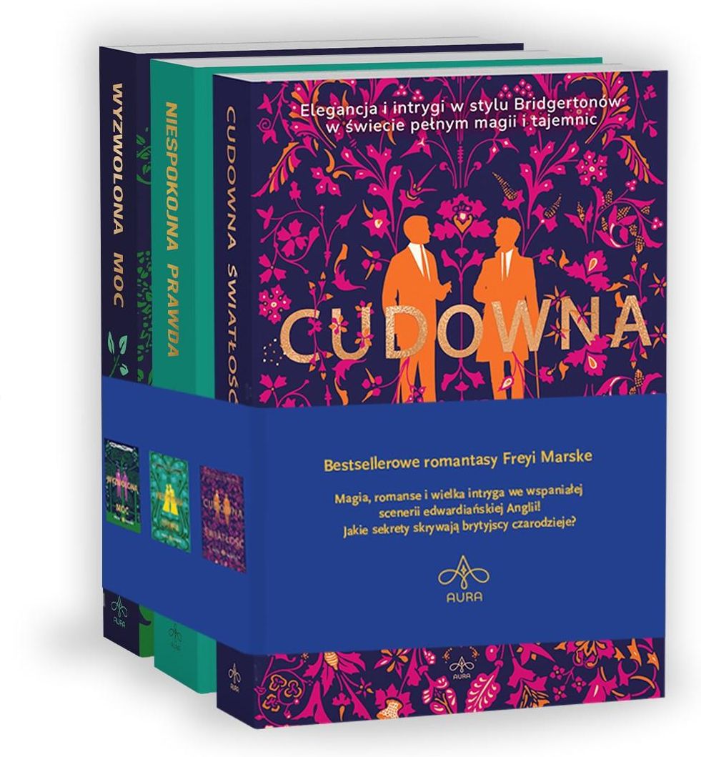 Pakiet trzech powieści fantasy. Robin Blyth, baronet, którego rodzinna posiadłość została zrujnowana, na skutek pomyłki administracyjnej obejmuje stanowisko łącznika z tajnym stowarzyszeniem czarodziejów. Musi stawić czoła pięknej i niebezpiecznej magii, śmiertelnej klątwie i przerażającym wizjom przyszłości – nie wspominając o oschłym urzędniku magicznej biurokracji, Edwinie Courceyu, który za wszelką cenę chce się go pozbyć.Mroczny spisek zagrażający czarodziejom na Wyspach Brytyjskich zmusza Robina i Edwina do współpracy. Czy odkryją prawdę, zanim będzie za późno? I, co ważniejsze, czy w obliczu nagłego niebezpieczeństwa znajdzie się miejsce na rodzące się między nimi uczucie? Maud Blyth zawsze marzyła o przygodach, więc postanowiła pomóc starszemu bratu odkryć magiczny spisek sprzed lat. A miała tylko towarzyszyć starszej pani podczas podróży transatlantykiem… . Nie spodziewała się jednak, że owa starsza pani padnie trupem już pierwszego dnia rejsu. Teraz Maud musi poradzić sobie ze zwłokami, bezczelną papugą oraz uroczą i niebezpieczną Violet Debenham. Violet reprezentuje sobą wszystko, przed czym ostrzegano Maud przez całe życie: jest czarodziejką, aktorką i niepoprawną skandalistką. Czy panna Blyth będzie mogła się oprzeć temu, co zakazane? Otwarte morze i statek pełen podejrzanych… Żeby nie skończyć za burtą, Maud i Violet będą musiały zdemaskować mordercę i odnaleźć magiczny obiekt, za który warto zabić.Jack Alston, lord Hawthorn, chciałby wieść lekkie, przyjemne i wygodne życie, jak na angielskiego dżentelmena przystało. Po tragicznej śmierci siostry był pewny, że skończył z magią na dobre. Jednak kiedy zagrożeni są wszyscy czarodzieje w Wielkiej Brytanii, lord Hawthorn postanawia pomóc w odnalezieniu elementu ostatniego kontraktu, zanim ten wpadnie w niepowołane ręce.Aby tego dokonać, potrzebna będzie pomoc Alana Rossa, dziennikarza i złodzieja. Dystyngowany i niesłychanie uprzywilejowany lord Hawthorn reprezentuje sobą wszystko, czego Alan nienawidzi. I niestety Alan jest wszystkim, czego lord Hawthorn pragnie. Szalona noc pełna szampana, sekretów i krwawych ofiar doprowadzi do niejednej rewolucji. Czy świat jest gotowy na zmianę dotychczasowego porządku? Pakiet Cudowna światłość + Niespokojna prawda + Wyzwolona moc – Trzy powieści fantasy w jednym! Odkryj magiczny świat pełen przygód, tajemnic i niebezpieczeństw w pakiecie trzech powieści autorstwa Freyi Marske. Każda z historii wciąga czytelnika w wir emocji, zaskakujących zwrotów akcji oraz niezwykłych postaci, które muszą stawić czoła nie tylko zewnętrznym zagrożeniom, ale także własnym uczuciom. Dla kogo jest ta książka? Miłośnicy fantasy i magii Osoby szukające emocjonujących przygód Fani romantycznych wątków w literaturze Czytelnicy pragnący odkryć nowe, intrygujące historie Co zyskasz dzięki tej publikacji? Wciągające opowieści pełne magii i tajemnic Możliwość zanurzenia się w różnorodne światy i postacie Emocjonujące wątki romantyczne i przygodowe Inspirację do odkrywania własnych marzeń i pragnień Kluczowe tematy i obszary Magia i czarodziejstwo Rodzinne więzi i lojalność Przyjaźń i miłość w obliczu niebezpieczeństwa Intrygi i spiski w świecie czarodziejów O Autorze Freya Marske to utalentowana autorka, która z pasją tworzy światy pełne magii i emocji. Jej powieści łączą w sobie elementy fantasy z głębokimi wątkami ludzkich relacji, co sprawia, że są one niezwykle angażujące dla czytelników. O Wydawcy AURA to wydawnictwo, które specjalizuje się w publikacji literatury fantasy i science fiction. Dzięki starannie wyselekcjonowanym tytułom, AURA zdobyła uznanie wśród miłośników gatunku, oferując im wyjątkowe i inspirujące historie. Producent/osoba odpowiedzialna za bezpieczeństwo produktuWydawnictwo Sonia Draga Sp. z o.o.Fitelberga 140-588 Katowiceinfo@soniadraga.pl327826037