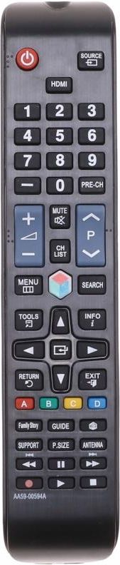 Uniwersalny pilot do telewizorów Samsung Nie wymaga programowania, pasuje do większości modelu telewizorów Samsung Cechy produktu Pilot do telewizorów Samsung Wykonany z wysokiej jakości tworzywa Wystarczy włożyć baterie i pilot będzie działał z telewizorem Przyciski odporne na ścieranie Nie posiada ostrych krawędzi Zasilany na 2 baterie R3 (AAA) Długość: 23 cm UWAGA! Przed zakupem upewnij się czy posiada on przyciski które Ciebie najbardziej interesują
