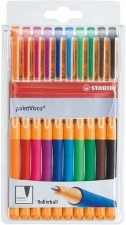 STABILO pointVisco - pióro kulkowe z formułą żelową. Gwarantuje absolutnie bezkonkurencyjne wrażenia podczas pisania. Pióro stworzone z myślą o wszystkich, którzy dużo piszą. Posiada pomarańczową obudowę w charakterystyczne dla STABILO jasne pasy oraz gumowaną strefę uchwytu w kolorze tuszu. Całość uzupełnia klips i zatyczka również w kolorze tuszu. Grubość linii pisania 0,5 mm. Pióro dostępne jest w 10 kolorach. Plastikowe etui zawierające 10 szt. w kolorach podstawowych. STABILO to światowy lider w produkcji artykułów piśmienniczych z bogatą 160 letnią historią i doświaczeniem. STABILO stawia na niemiecką jakość, imponującą paletę barw oraz przełomowe rozwiązania technologiczne przekładające się na wysoką jakość i żywotność produktów. W ofercie STABILO znajdziesz Długopisy Cienkopisy Foliopisy Pisaki Ołówki Kredki Pióra