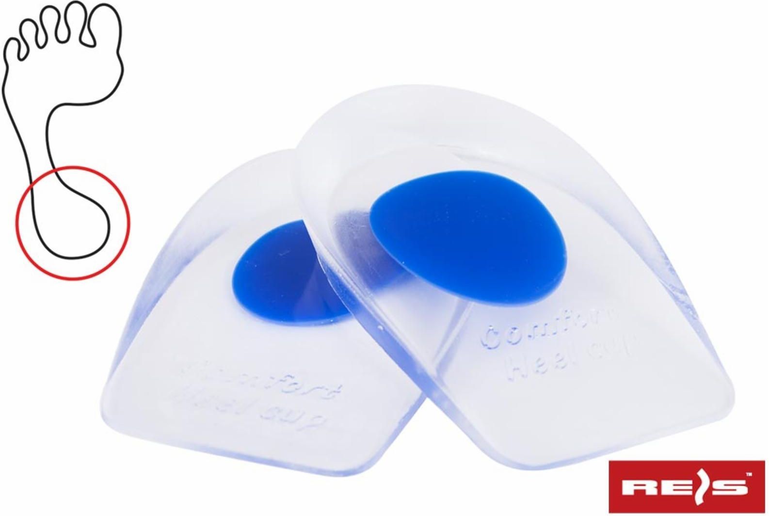 BR-PODPIETKA Podpiętka silikonowa, męska. samoprzylepne podpiętki wykonane z przyjemnego w dotyku silikonu o dwóch gęstościach. Część kolorowa znajdująca się w środku podpiętki jest bardziej miękka, a jej zadaniem jest odciążenie kości piętowej. Część przezroczysta znajdująca się dookoła, stabilizuje i amortyzuje piętę przed urazami związanymi z długotrwałym chodzeniem lub staniem. Zapobiegają bólom stóp, stawów i kręgosłupa. Produkt można myć pod bieżącą wodą lub przetrzeć wilgotną ściereczką. Każda para pakowana w osobną torebkę. Marka: REIS