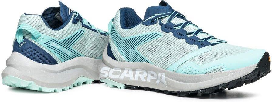 Buty trailowe damskie Scarpa Spin Planet - aqua/nile blue są modelem wykonanym z materiałów recyklingowych, który doskonale spisze się podczas biegów na długich dystansach. Buty trailowe damskie Scarpa Spin Planet - aqua/nile blue dzięki zastosowaniu sprawdzonych rozwiązań zapewnią Ci maksymalny komfort i odpowiednią stabilność, którą docenisz podczas treningów w najbardziej wymagającym terenie. Buty trailowe damskie Scarpa Spin Planet - aqua/nile blue wyposażone zostały w cholewkę, która wykonana została w 100% z materiałów pochodzących z recyklingu. Zastosowana w niej podeszwa środkowa z pianki EVA zawiera w sobie aż 45% materiałów recyklingowych, a gumowa podeszwa zewnętrzna Presa® TRN-06 - 30%. Zastosowana w butach podeszwa Presa® TRN-06 zapewnia maksymalny komfort i niesamowitą wydajność. Posiada ona szerokie kołki oraz specjalne otwory zapewniające jej doskonałą plastyczność. Piankowa podeszwa środkowa zadba o stabilność każdego kroku, a dobrze skomponowana mieszanka gumy łączy w sobie wysoką przyczepność i trwałość. Buty Scarpa Spin Planet - aqua/nile blue - najważniejsze cechy:Lekki model biegowy dedykowany na długie dystanse;Cholewka wykonana w 100% z materiałów pochodzących z recyklingu;Konstrukcja cholewki EXO zapewnia lepszą ochronę i wsparcie stopy;Podeszwa środkowa z pianki EVA zawiera w sobie aż 45% materiałów recyklingowych;Podeszwa zewnętrzna Presa® TRN-06 zawiera w sobie 30% materiałów recyklingowych;Presa® TRN-06 zapewnia maksymalny komfort i niesamowitą wydajność;Zastosowana mieszanka gumy łączy w sobie wysoką przyczepność i trwałość;Szerokie kołki oraz specjalne otwory zapewniające doskonałą plastyczność podeszwy;Piankowa podeszwa środkowa dbająca o stabilność każdego kroku.