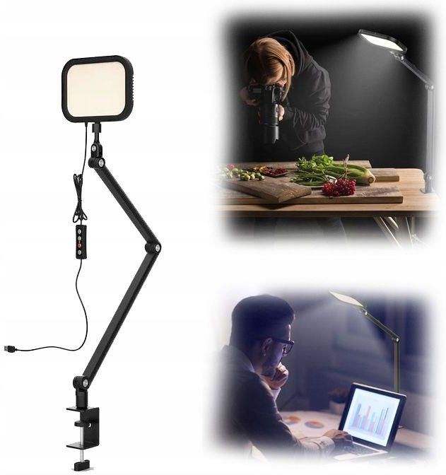 Lampa Oświetleniowa LED Biurkowa Stołowa + Imadło do VLOG Video Live Foto / APL-FL25 Słubice