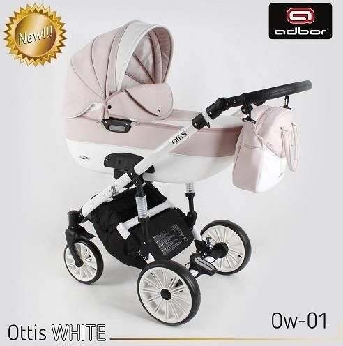 OTTIS WHITE 2W1 (kolor: Ow-01) - WÓZEK WIELOFUNKCYJNY NA KONSTRUKCJI Z ALUMINIUM + Torba + Pokrowiec + Moskitiera + Uchwyt na butelkę Opis produktu Nowoczesna, aluminiowa konstrukcja Skrętne (360 stopni) pompowane przednie koła z możliwością blokady do jazdy na wprost Proste w montażu pompowane tylne koła z układem centralnego parkowania System wpinania elementów "CLICK" Urządzenie do parkowania Montaż gondoli, siedziska, fotelika tyłem lub przodem do kierunku jazdy Rączka do prowadzenia wózka i barierka spacerówki obszyta skórą ekologiczną Regulowana wysokość rączki Regulacja oparcia zarówno w siedzisku jak i gondoli Pasy bezpieczeństwa: pięcioramienne w spacerówce Wentylacja w budce Dopinany pokrowiec przy nóżkach w gondoli, wersji spacerowej Regulowany podnóżek siedziska NOWOŚĆ - materacyk z pianki ryflowanej w połączeniu z dolnym systemem wentylacji gondoli zapewniają lepszą cyrkulację powietrza Nowe rozwiązanie kosza na zakupy, gwarantuje łatwy dostęp jak i możliwość powiększenia go w razie potrzeby W komplecie: Torba zapinana na rączce Pokrowiec przeciwdeszczowy i moskitiera na cały wózek Uchwyt na butelkę Gondola Spacerówka Stelaż ALUMINIOWY z pompowanymi kołami na łożyskach W opcji Fotelik samochodowy CAPRI posiada specjalne adaptery umożliwiające montaż do konstrukcji stelaża i przeznaczony jest dla dzieci o wadze 0-10 kg. K olor fotelika będzie w tej samej kolorystyce co wózek i z tego samego materiału. Link do produktu: Fotelik samochodowy Capri 0-10kg Fotelik samochodowy COSMO przystosowanego do bazy ISOFIX, który posiada specjalne adaptery umożliwiające montaż do konstrukcji wózka i przeznaczone są dla dzieci o wadze do 13kg. Kolor fotelika będzie w tej samej kolorystyce co wózek i z tego samego materiału. Link do produktu: Fotelik samochodowy ADBOR Avionaut Cosmo ISOFIX 0-13kg W naszym asortymencie znajduje się również BAZA ISOFIX do fotelika COSMO umożliwiająca montaż w samochodzie z systemem ISOFIX, która daje komfort i bezpieczeństwo w trakcie podróży. Link do produktu: BAZA ISOFIX IQ 2.0 C do fotelików ADBOR Avionaut Cosmo Waga (poszczególne elementy): stelaż z kołami: 10,0 kg siedzisko: 5,5 kg gondola: 4,5 kg Wymiary po złożeniu (stelaż z kołami): szerokość: 0,63 m długość: 0,84 m wysokość: 0,37 m