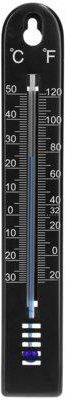 Termometr uniwersalny (-30 do +50°C), 17 cm, czarny 014704 Termometr z podwójną skalą w °C i °F. Jeśli szukasz dokładnego, uniwersalnego termometru z podwójną czytelną skalą - mamy dla Ciebie idealny produkt. Nasz termometr pokojowy (ale jeśli nie ma większych mrozów, przydatny także na zewnątrz) posiada niską tolerancję błędu do +/- 1°C, a także szeroki zakres pomiaru temperatury od - 30°C do + 50°C i od 20°F do 120°F. Łatwość zawieszenia termometru oraz jego wysoka jakość sprawią, że będziesz zadowolony z dokonanego zakupu. Pomocny w domu i na zewnątrz - ten innowacyjny, uniwersalny termometr pozwoli Ci na kontrolę temperatury powietrza w zakresie od -30 do +50°C i 20 do 120°F. Wysoka jakość - wykonany z tworzywa sztucznego nadaje się do stosowania w pomieszczeniach, w których panuje bardzo duża wilgotność powietrza, a także na zewnątrz - jeśli temperatura nie przekracza - 30°C lub 20°F! Bezproblemowe zawieszanie - w górnej części termometru znajduje się otwór ułatwiający jego zawieszenie w pomieszczeniach lub na zewnątrz. Czytelna skala do odczytu w °C i °F - pozwala na odczyt temperatury powietrza zarówno w stopniach Celsjusza (lewa skala), jak i w stopniach Fahrenheita (prawa skala). Minimalistyczny design - prosta obudowa w kształcie prostokąta, od góry zakończona łukiem. Solidny, uniwersalny termometr wykonany z tworzywa - sprawdzi się jako termometr zewnętrzny (jeśli minimalna temperatura powietrza nie przekracza - 30°C i 20°F), a przede wszystkim jako termometr używany wewnątrz pomieszczeń. Bez problemu powiesisz go w dowolnie wybranym miejscu. Termometr pozwala na kontrolowanie temperatury powietrza w zakresie od - 30°C do + 50°C z tolerancją błędu +/- 1°C lub od 20°F do 120°F w stopniach Fahrenheita. Termometr posiada kapilarę, głęboko osadzoną w zagłębieniu obudowy wykonanej z tworzywa sztucznego, dzięki czemu może on być stosowany także w pomieszczeniach o bardzo dużej wilgotności. Minimalistyczny design (prostokąt od góry zakończony łukiem) i prosta, podwójna skala. Kolor: czarny