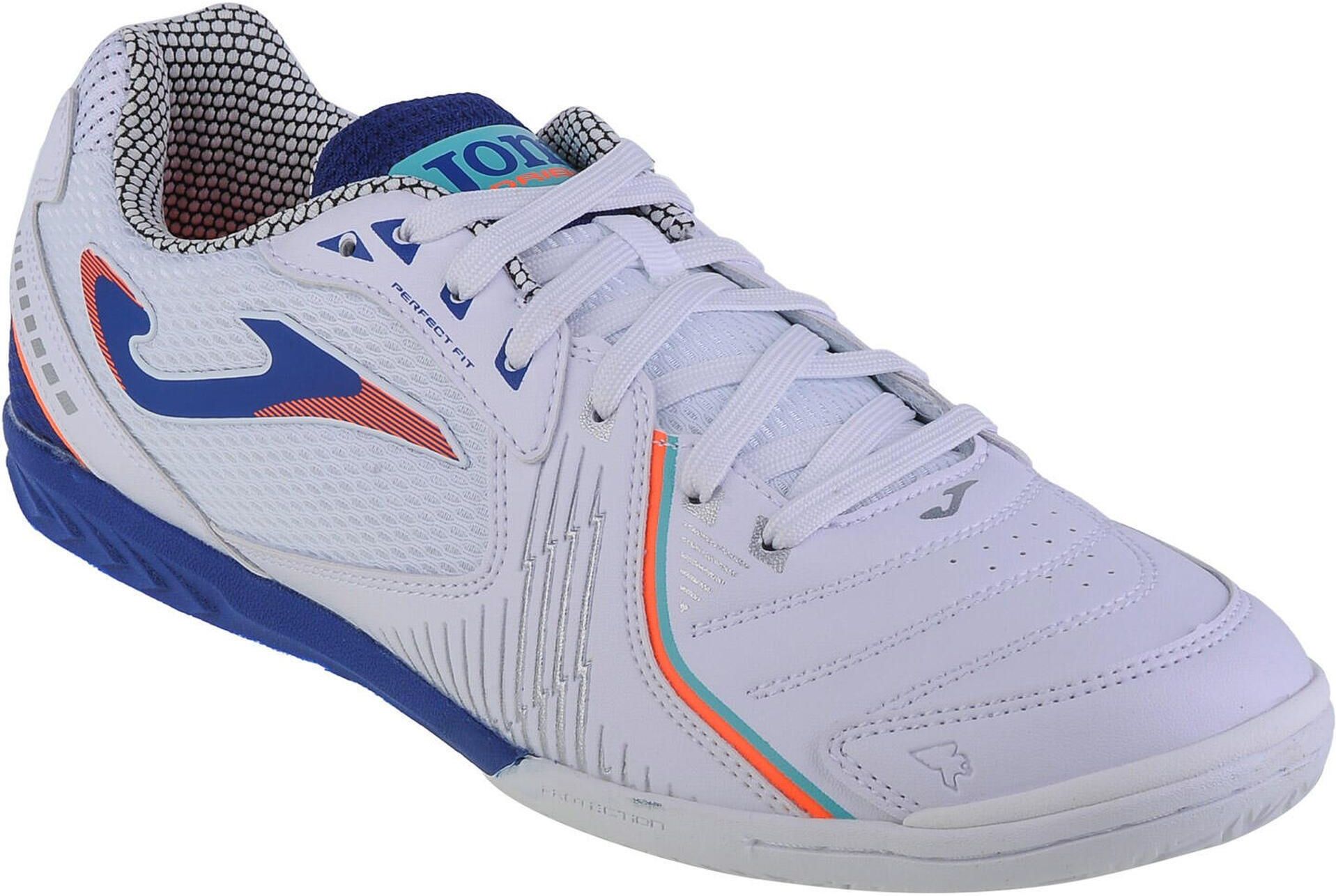 Buty piłkarskie Joma Dribling Indoor 2302 biało-granatowe DRIW2302IN Właściwości Rozgrywaj towarzyskie, pełne emocji mecze na hali i udoskonalaj swoje umiejętności w męskich halówkach Joma. Klasyczna, sznurowana cholewka z wysokiej jakości skóry syntetycznej zyskała tradycyjne przeszycia i tworzy dynamiczną sylwetkę z materiałowymi panelami, która zapewnia bardzo dobre dopasowanie i precyzyjną kontrolę nad piłką. Wzmocniony obszar Protection przy palcach. System Flexo zwiększający naturalny zakres ruchów. System wentylacyjny VTS gwarantuje suchość i wsparcie stóp. Podeszwa non-marking z systemem Rotation, wspomagającym rotacyjne ruchy stopy. System Durability gwarantuje większą wytrzymałość i odporność podeszwy na ścieranie. Dane techniczne: ·Protection - wzmocnienie wytrzymałości strefy przy palcach ·VTS - system wentylacyjny, który wspomaga cyrkulację powietrza i reguluje temperaturę stóp ·Rotation - element podeszwy wspomagający zwrotne i mocno rotacyjne ruchy ·Flexo - system rowków w podeszwie zewnętrznej gwarantujący giętkość i zwiększenie naturalnego zakresu ruchów ·Durability - gwarantuje większą wytrzymałość i odporność podeszwy na ścieranie, dzięki zastosowaniu wysokiej jakości gumy ·Non-marking - podeszwa wykonana z materiałów nie pozostawiających śladów na parkiecie