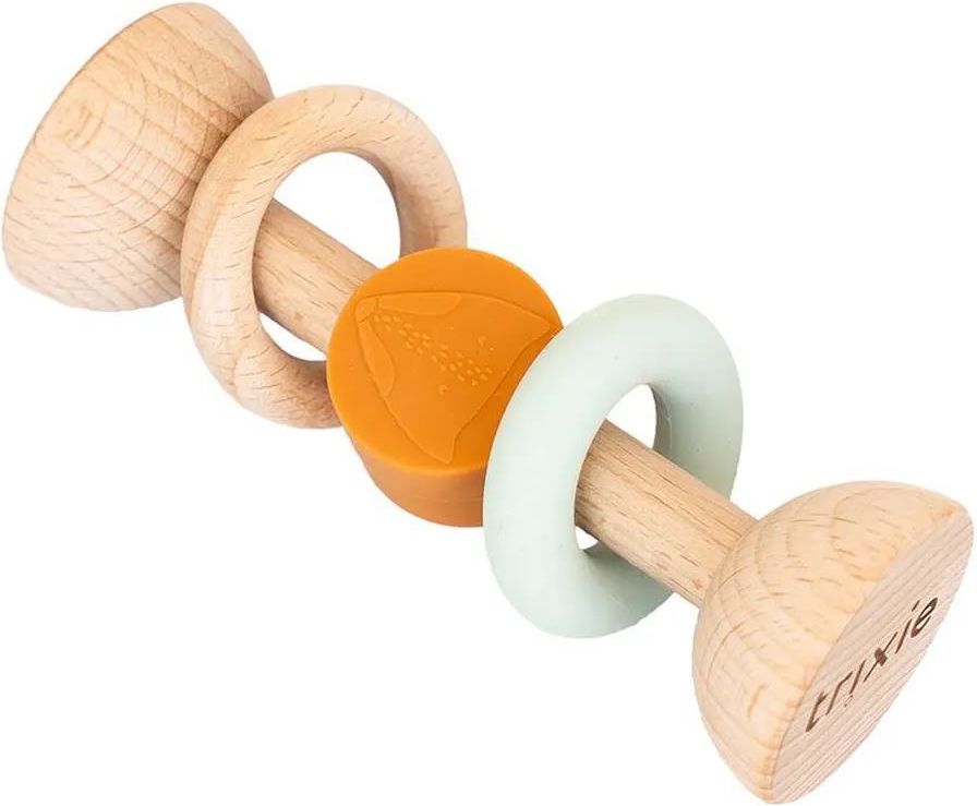 Zabawnie zaprojektowana z myślą o małych rączkach, ta grzechotka jest idealna dla noworodków i maluszków. Każdy nowy przyjaciel oferuje różnorodne bodźce sensoryczne dzięki miękkiemu silikonowi i gładkiemu drewno bukowemu, a zaokrąglone krawędzie oraz radosne kolory przyciągają wzrok dziecka. Grzechotka wydaje delikatny, satysfakcjonujący dźwięk, a silikonowe elementy świetnie nadają się do gryzienia, co wspiera rozwój umiejętności manualnych oraz koordynacji ręka-oko. Producent: Trixie Baby Skład: Drewno bukowe FSC® - 100%, silikon Rekomendowany wiek: 0m+ Wymiary (Dł. x Sz. x Wys.): 11 x 4,5 x 4,5 cm