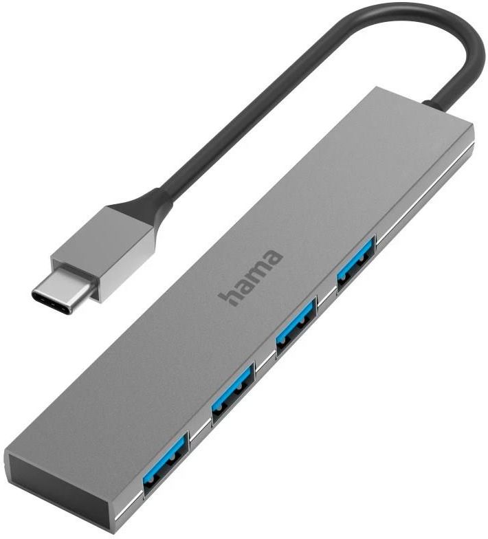 Hama Hub Premium USB-C 1:4x USB-A 3.2 Gen1 (200101) Superwysoka szybkość transferu danych do 5 Gbps DANE TECHNICZNE: Połączenie: USB-3.2 Gen 1 Szczegóły połączenia:  4x USB-A / USB 3.2 Gen1 / max. 5 Gbit/s Długość kabla: 0,15 m Głębokość (korpus): 2,1 cm Szerokość (korpus): 10.7 cm Wysokość (korpus): 0,70 cm KORZYŚCI DLA CIEBIE: Do podłączenia komputera PC, notebooka, MacBooka, tabletu z zewnętrznym dyskiem twardym, pamięcią USB, myszą, klawiaturą lub drukarką Plug & Play, nie wymaga ręcznej instalacji oprogramowania / sterowników Kompatybilny z Thunderbolt-3/4 (symbol błyskawicy) Zasilanie przez USB DLACZEGO HAMA? Jesteśmy niemieckim producentem i dystrybutorem akcesoriów oraz sprzętu elektronicznego. Działamy w wielu obszarach, śledzimy trendy technologiczne i już od niemal 100 lat tworzymy rozwiązania, które sprawiają, że codzienne życie jest po prostu łatwiejsze. Artykuły Hama to niezawodne i certyfikowane produkty, które poddawane są restrykcyjnym testom przez nasz wewnętrzny dział zapewnienia jakości QC. Posiadają wszystkie wymagane prawem certyfikaty, dopuszczające je do handlu w Polsce, m.in. CE i TÜV. W konsekwencji wszystkie nasze produkty są w pełni bezpieczne dla swoich użytkowników. Myślisz poważnie o akcesoriach, pomyśl o produktach Hama. Bez względu na to, jakie urządzenie posiadasz, z pewnością mamy do niego funkcjonalne uzupełnienie.