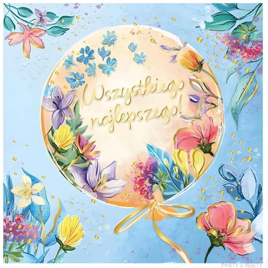 Karnet Balon w kwiatach Karnet Balon w kwiatach to stylowy produkt w wymiarach 15x15 cm. Został wykonany na papierze o wysokiej jakości cechującym się trwałością i estetyką. Posiada unikalne, tłoczone wzory pokrywające całą powierzchnię, które dodają mu niepowtarzalnego charakteru. Wykończony jest eleganckim złoceniem, podkreślającym jego wyjątkowy styl. Do karnetu dołączona jest kolorowa koperta, co czyni go gotowym do wysłania jako upominek czy też jako wyjątkowy dodatek do prezentu. EAN: 5905701481965