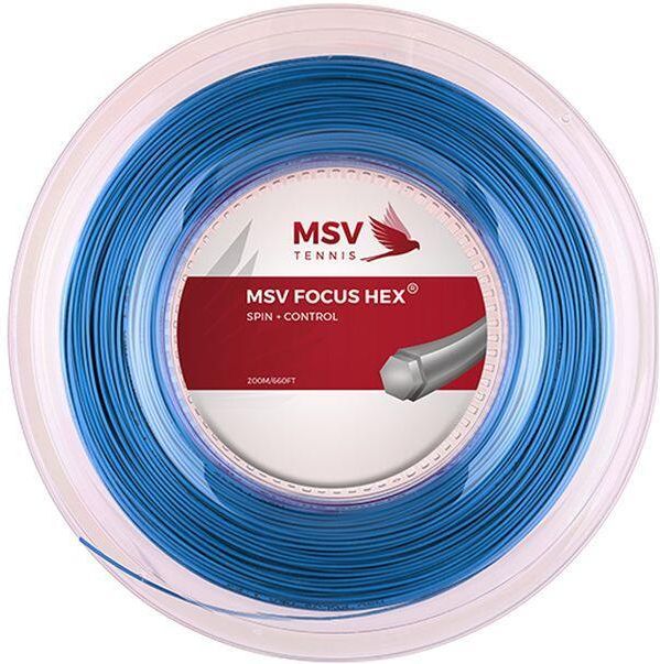 MSV Focus Hex - wyjątkowy naciąg o hexagonalnym przekroju. Dzięki zastosowaniu powierzchni z sześcioma krawędziami zapewnia maksymalne doskonałe rotacji na piłkę. Jednocześnie naciąg oferuje znakomitą dynamikę, czucie i utrzymaniu naprężenia. Polecany dla mocno uderzających tenisistów. Kolor: niebieski, Długości: 200 m. Grubość: 1,18 mm.