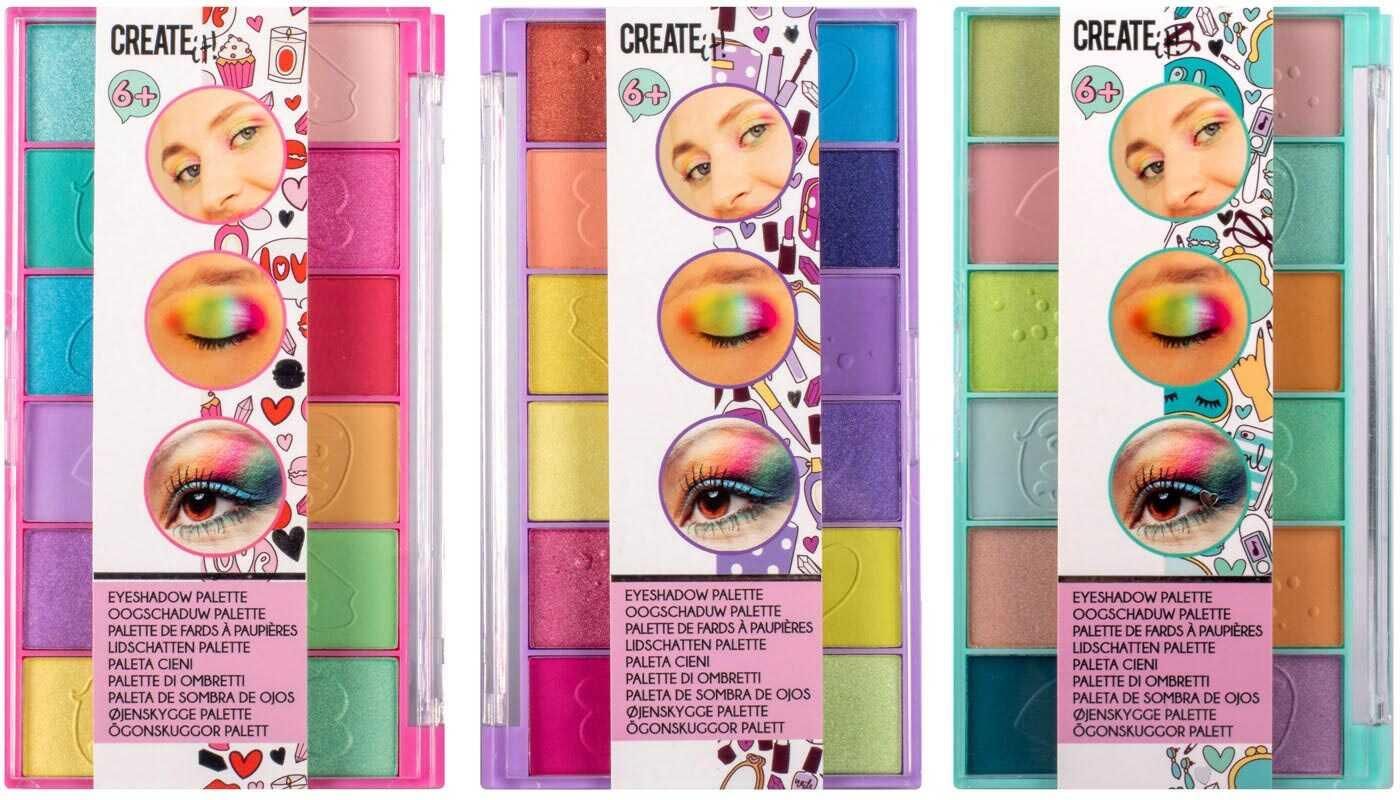 Pożegnaj się z nudnymi cieniami do powiek, ponieważ paleta cieni Create it! zawiera najbardziej żywe kolory. Zamień swoje oczy w słodką tęczę lub trzymaj się jednego koloru. Do wyboru są trzy różne palety, a każda z nich zawiera 12 różnych kolorów i fajne tłoczenia. To oznacza, że możesz zebrać aż 36 kolorów cieni do powiek! Ciesz się zabawną metamorfozą z przyjaciółmi i rozpocznij swoją karierę jako makijażystka.