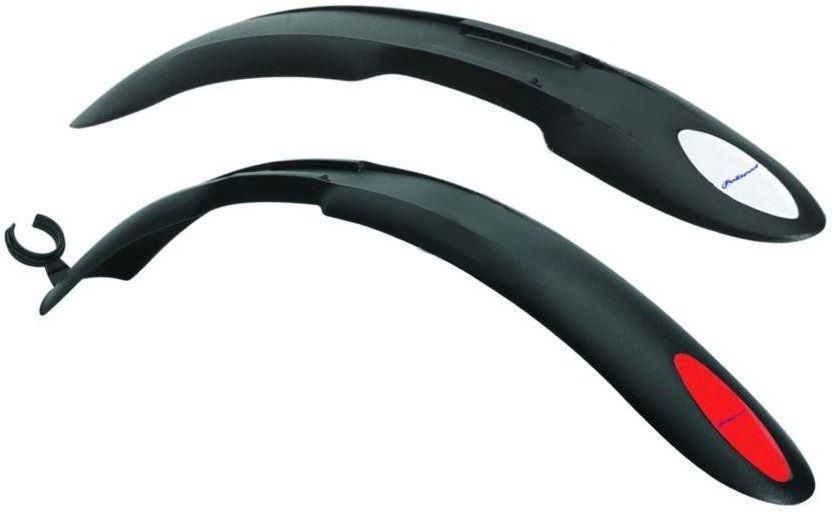 Błotniki PCV czarny, tył z uchwytem na rurę podsiodłową fi 27 - 35 mm, przód z kompletem uchwytów mocujących.