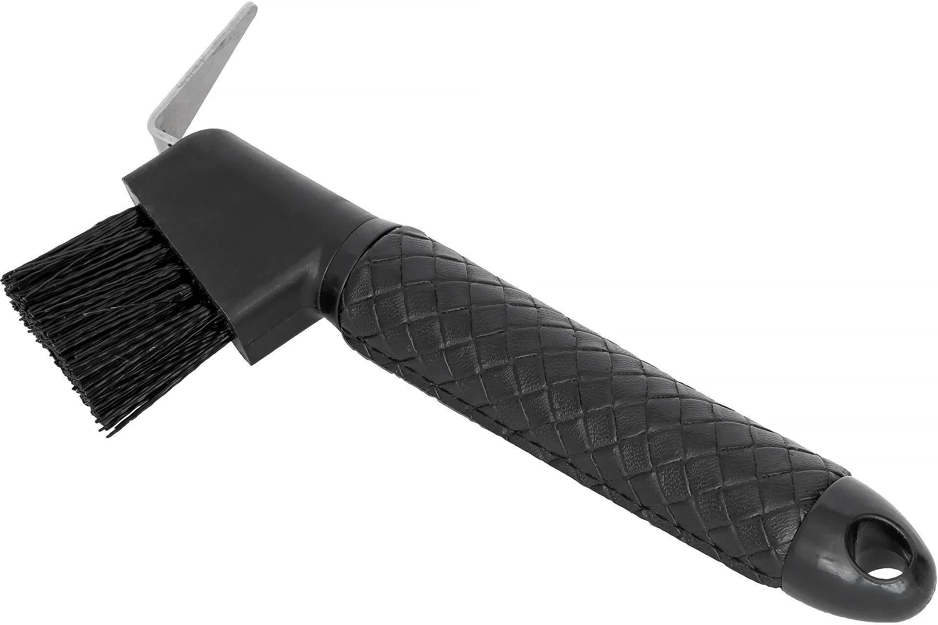 Kopystka dla konia ze szczotką START Braided DO KOPYT czarna Kopystka ze szczotką START Braided to praktyczne narzędzie dwuwymiarowe, które łączy w sobie wygodę kopystki i funkcjonalność szczotki. Idealne do codziennej pielęgnacji kopyt koni, kopystka umożliwia skuteczne usuwanie brudu i kamieni, natomiast zintegrowana szczotka pozwala na oczyszczanie i polerowanie powierzchni kopyta. Ergonomiczny uchwyt kopystki, ozdobiony plecionym wzorem, zapewnia pewny i komfortowy chwyt, co jest kluczowe przy precyzyjnej pracy. Wytrzymała konstrukcja i wysokiej jakości materiały gwarantują długotrwałe użytkowanie. Kopystka ze szczotką START Braided jest niezbędnym akcesorium dla każdego właściciela konia, zapewniającym efektywną i bezpieczną pielęgnację kopyt.