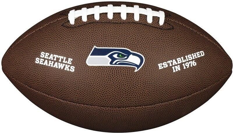 Piłka do futbolu Wilson Team Seattle Seahawks r.9 Piłka w oficjalnym rozmiarze i logo Seattle Seahawks do użytku w czasie wolnym, nadaje się również dla kolekcjonerów i fanów Solidne wykonanie i przyjemne w dotyku dzięki mieszanej skórze Podwójny szew zapewnia większą przyczepność i większą wytrzymałość Łatwe i szybkie pompowanie za pomocą pompki do piłek (dostępna oddzielnie), możliwe użycie w wodzie Poprawiona powierzchnia dla lepszego chwytu Kod producenta: WTF1748XBSE