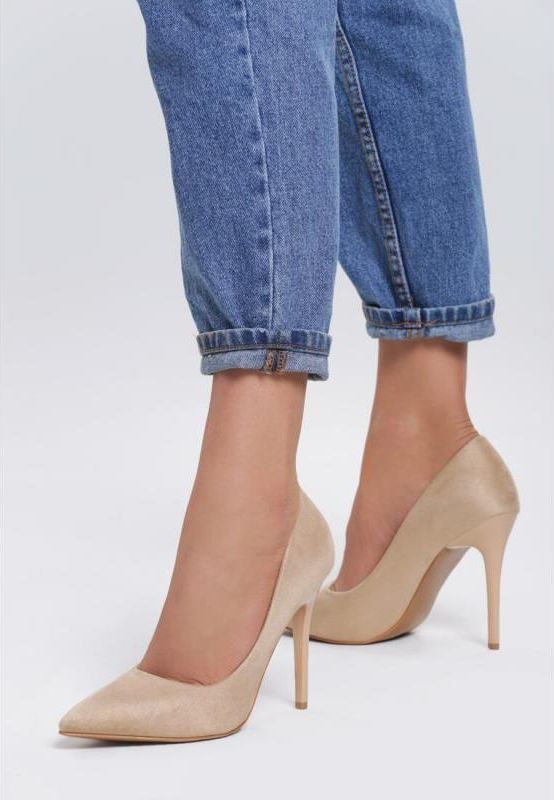 Szpilki Stiffness wsuwane, wykonane z ekozamszu. Szpiczasty nosek buta. Kolor: Beżowy Tęgość stopy: Wąski Rodzaj obcasa: Szpilka Wkładka/wyściółka: Ekoskóra Materiał: Ekozamsz Nosek buta: Szpiczasty Zapięcie: Wsuwany/otwarty Sezon: Całoroczny Wysokość obcasa: 10cm