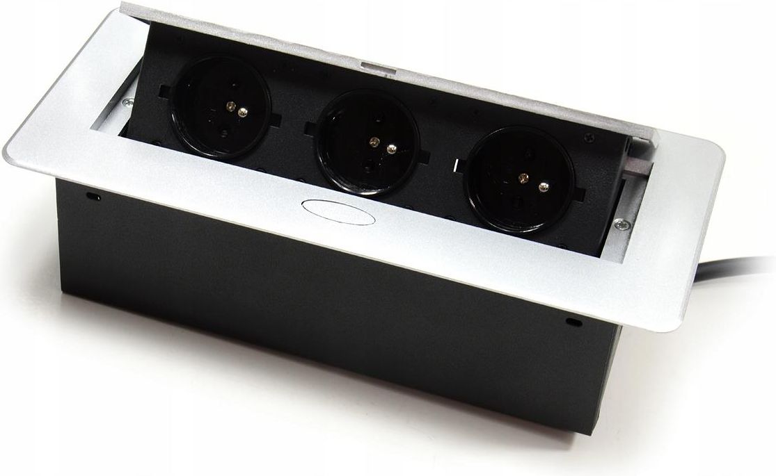 Gniazdo blatowe otwierane Spacetronik SPS-D33S to elegancki mediaport z 3 gniazdami elektrycznymi, otwieranym przyciskiem, z 1,5 metrowym kablem, w kolorze srebrnym.