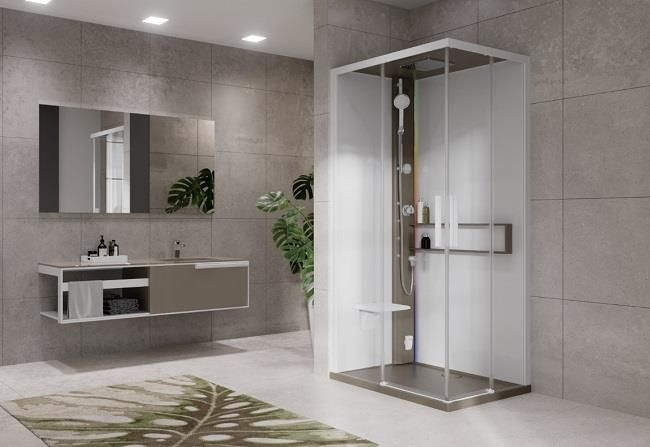 Novellini Glax kabina masażowo-parowa Kod produktu: G22A9079ST5-1TUWymiar: 90x70 cm Wysokość: 217 cm (C)Wysokość brodzika: 11,5 cmSzerokość wejścia: 40 cm (*)Kolor wykończenia: cordaPowłoka: Crystal Clear Montaż: na brodziku Drzwi: przesuwne Szkło: przejrzysteWejście narożneStrona lewaMateriał: szkło bezpieczne hartowane 6mm (drzwi) i 5mm (ścianka boczna)Typ: prostokątnyBateria: termostatyczna Deszczownica wbudowana w zadaszenieHydromasażSłuchawka prysznicowaSiedzisko składane BluetoothChromoterapiaGenerator pary+dyfuzor aromatuDotykowy panel sterującyPółka na kosmetykiGwarancja producenta.Szkło z powłoką CRYSTAL CLEAR obrabiane wewnętrznie. Zawsze błyszczące łatwe do czyszczenia dzięki specjalnej WYPALANEJ powłoce, która spowalnia formowanie się osadów wapiennych namnażanie bakteriiBluetoothHydromasażDotykowy panel Siedzisko składanePółka na kosmetykiBateria manualna lub termostatyczna isłuchawka prysznicowaDach z deszczownią Generator paryChromoterapia...
