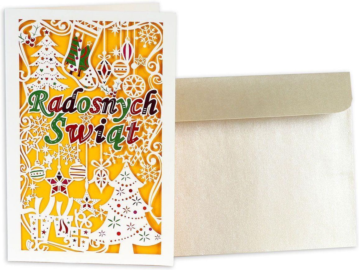 - karnet okolicznościowy - wzór: Boże Narodzenie - brak tekstu wewnątrz - w zestawie z kopertą - wymiary: 11,5 x 17,5 cm