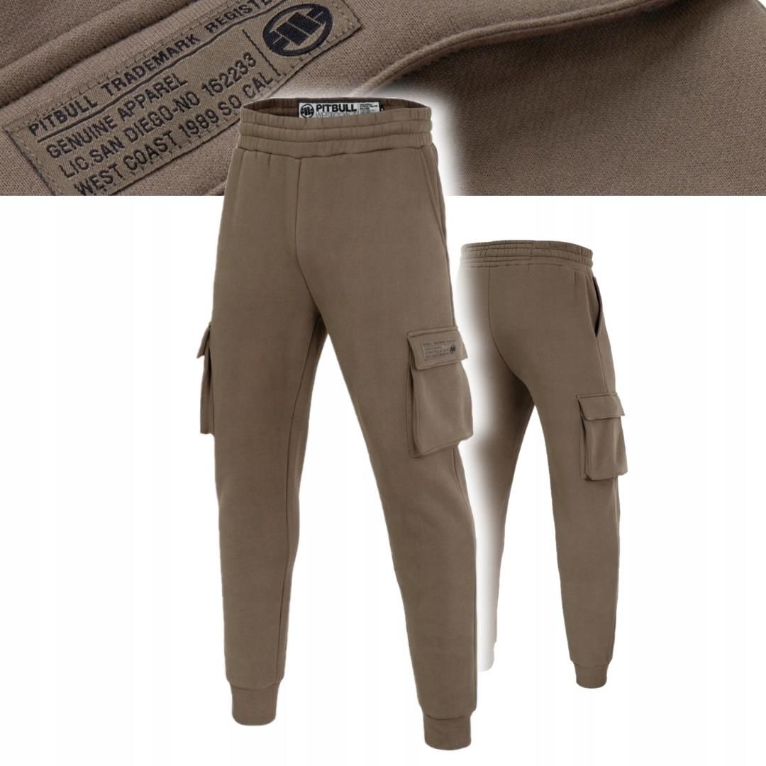 PITBULL WEST COAST SPODNIE DRESOWE BOJÓWKI CARGO CYPRESS BRĄZOWE BROWN ROZMIAR XL Spodnie dresowe męskie typu bojówki z kolekcji firmy PITBULL – Cypress Sport SERIA NEW BRUSHED FLEECE fason z bardziej dopasowanymi nogawkami wykonane z wysokogatunkowej grubej tkaniny o gramaturze 360 g/m2 tkanina od wewnętrznej strony jest szczotkowana i przyjemna w dotyku żebrowane ściągacze u dołu nogawek otwarte kieszenie boczne na ręce dodatkowe naszyte kieszenie na nogawkach szeroki elastyczny ściągacz w pasie dodatkowa regulacja szerokości pasa sznurkiem umieszczonym od wewnętrznej strony ściągacza mała materiałowa naszywka Pit Bull na lewej nogawce skład materiału: 60% bawełna, 40% poliester