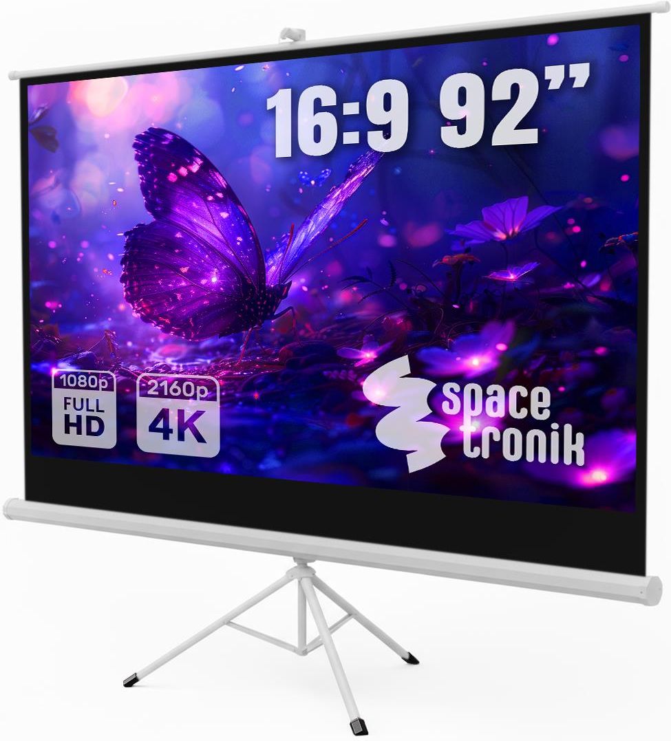 Spacetronik Ekran Projekcyjny Z Białym Statywem Przenośny 92 Cali 16:9 4K Prs-T01-92-169 Śmigiel