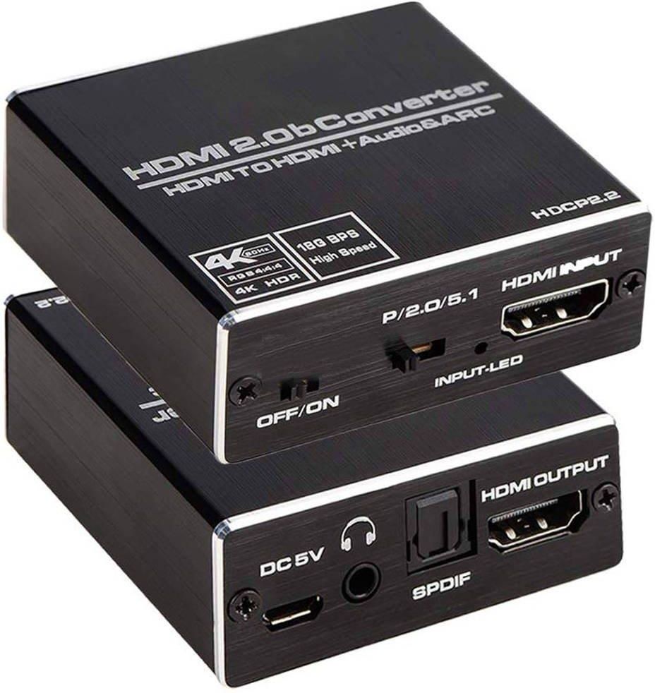 Przedmiotem sprzedaży jest: HDCEXTR06; Extractor HDMI-HDMI + Audio SPDIF ARC SPH-AE06. Extractor z funkcją ARC - Spacetronik SPH-AE06 Extractor HDMI na HDMI + Audio (R/L+SPDIF) pozwala na podłączenie urządzenia wysyłającego sygnał audio i video (tuner, konsola, dvd, blu-ray) do telewizora kablem HDMI. Dodatkowo można wyodrębnić sygnał audio z urządzenia i przesłać go do amplitunera kina domowego lub innego tego typu urządzenia. Dzięki takiemu rozwiązaniu dźwięk będzie słyszalny standardowo z głośników telewizora i dodatkowo z drugiego źródła po włączeniu amplitunera. Ciekawe rozwiązanie gdy chcemy panować i sami decydować kiedy dźwięk ma być słyszalny z danego urządzenia. Funkcja ARC - Jak to działa? Extractor HDMI ARC umożliwia funkcję ARC (Audio Return Channel). Pozwala na podłączenie telewizora/monitora z portem HDMI (ARC) oraz Extractora audio za pomocą kabla HDMI, a następnie za pomocą kabla optycznego do głośnika, listwy dźwiękowej, wzmacniacza itp. Dzięki temu możemy ograniczyć liczbę kabli w tego typu instalacji. UWAGA! Funkcja ARC działa tylko z wyjściem SPDIF Trzy tryby audio Tryb PASS: wyjściowy format audio zależy od sygnału wejściowego HDMI. Tryb 2CH: Ustaw 2CH, aby uzyskać analogowy dźwięk stereo. Wyodrębnij cyfrowy 2-kanałowy stereofoniczny sygnał audio z wejścia HDMI i przekonwertuj go na 2-kanałowe analogowe wyjście stereo za pomocą wyjścia audio / optycznego SPDIF 3,5 mm jednocześnie. Tryb 5.1CH: Ustaw 5.1CH, aby uzyskać dźwięk przestrzenny 5.1 (Źródło wejścia HDMI musi obsługiwać 5.1CH), które można wyodrębnić przez wyjście optyczne SPDIF. Obsługuje Dobly TrueHD i DTS-HD Master Audio. Najważniejsze funkcje Jedno wejście HDMI do jednego wyjścia HDMI + cyfrowe wyjście SPDIF (optyczne) audio (tryb 2CH / 5.1CH) i 3,5 mm stereofoniczne wyjście audio (tryb 2CH) SPDIF i L / R obsługują wyjście audio oddzielnie, bez potrzeby podłączenia telewizora / monitora; Rozdzielczość wejściowa do 4K x 2K, 1080P / 60Hz, 3D / 24Hz. Obsługuje głębię kolory 24 bit / 30bit, 36bit na kanał; Posiada przełącznik audio 2CH-5.1CH Cechy produktu Wejście 1 x HDMI IN Wyjścia 1 x HDMI OUT, 1 x SPDIF (Optical), 1 x 3.5mm Jack Rozdzielczość: 4K x 2K/3D/80i/80p/576i/576p/720p/1080i/1080p@60Hz Wsparcie HDMI 2.0 Trzy tryby audio: PASS/2.0CH/5.1CH Max pasmo 600MHz Max prędkość transmisji 18Gbps Max prąd roboczy 350mA Zestaw zawiera 1x HDMI Audio Extractor 1x Micro USB kabel + wtyczka 230V 1x Kabel SPDIF Instrukcja obsługi EN
