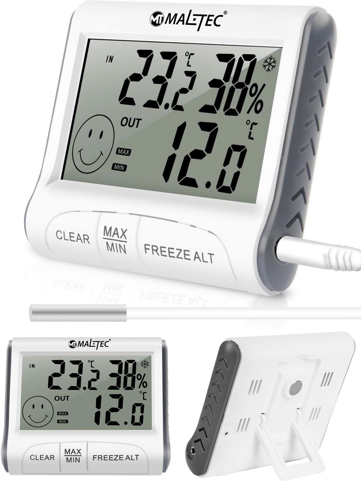 Stacja Pogodowa Pogody Termometr Higrometr Czujnik Sonda Bezprzewodowa PRECYZYJNY POMIAR TEMPERATURY WEWNĘTRZNEJ I ZEWNĘTRZNEJ MONITORING WILGOTNOŚCI SONDA ZEWNĘTRZNA CZYTELNY WYŚWIETLACZ WSKAŹNIK KOMFORTU ALARM PUNKTU ZAMARZANIA ◾ TERMOMETR ◾ HIGROMETR ◾ WSKAŹNIK KOMFORTU W POMIESZCZENIU ◾ Teraz w Zestawie z Zewnętrzną Sondą do Pomiaru Temperatury - GRATIS! NAJWAŻNIEJSZE CECHY PRODUKTU Monitorujetemperaturę wewnętrzną, zewnętrzną oraz wilgotność wewnętrzną Wyświetlacz sygnalizuje optymalne warunki temperatury i wilgotności w sposób graficzny Posiada zewnętrzną sondę pomiarową o długości 100 cm Możliwość przełączania między °C a °F Zapamiętuje maksymalne i minimalne wartości temperatury oraz wilgotności Alarm informuje o możliwym oblodzeniu w zakresie temperatur -1°C do +4°C Dwie możliwości montażu - magnes, który umożliwia montaż na metalowych powierzchniach, oraz podstawkę do ustawienia na półce lub stole Bateria w zestawie PARAMETRY Marka: MalTec Model: Daily900M Zakres temperatury wewnętrznej: -10°C do 50°C Zakres temperatury zewnętrznej: -50°C do 70°C Jednostki: °C/°F Zakres wilgotności wewnętrznej: 20% do 90>#/li### Zasilanie stacja: 1 x bateria AG13 (w zestawie) Długość sondy: 100 cm Wymiary stacji: 8 x 7 x 2 cm Wymiary opakowania: 12,5 x 12,5 x 2,5 cm Oryginalny produkt od polskiego dystrybutora! Stacja pogodowa Daily900M jest idealnym urządzeniem do monitorowania temperatury, zarówno wewnątrz, jak i na zewnątrz, pomagając w utrzymaniu optymalnych warunków w Twoim otoczeniu. Przystępna cena, łatwość obsługi oraz staranne wykonanie cieszą się wysokim uznaniem wszystkich zainteresowanych i Klientów. CZYTELNY WYŚWIETLACZ Stacja pogodowa Daily900M wyposażona jest w duży, czytelny wyświetlacz LCD, który w sposób wyraźny prezentuje bieżące pomiary temperatury wewnętrznej i zewnętrznej oraz wilgotności wewnątrz pomieszczenia. Urządzenie umożliwia łatwe przełączanie między jednostkami temperatury - Celsjusza i Fahrenheita. WSKAŹNIK KOMFORTU Urządzenie pomiarowe jest wyposażone w graficzny wskaźnik komfortu, który zmienia się w zależności od panujących warunków. Na wyświetlaczu pojawiają się różne symbole, w zależności od tego, czy temperatura i wilgotność są optymalne, za wysokie, czy za niskie. Dzięki temu od razu wiesz, czy warunki w pomieszczeniu sprzyjają komfortowi, czy wymagają poprawy. ELASTYCZNE OPCJE MONTAŻU Nasza stacja Daily900M oferuje dwie wygodne możliwości montażu. Dzięki wbudowanemu magnesowi można łatwo przymocować urządzenie do dowolnej metalowej powierzchni, takiej jak lodówka, metalowy uchwyt czy inne elementy wyposażenia. Dodatkowo, stacja wyposażona jest w praktyczną podstawkę, która umożliwia stabilne ustawienie na półce, biurku lub stole, co pozwala dostosować urządzenie do różnych potrzeb użytkowników. ZEWNĘTRZNA SONDA POMIAROWA Sonda pomiarowa umożliwia precyzyjne monitorowanie temperatury na zewnątrz, nawet w trudnych warunkach pogodowych. Jest łatwa w montażu i pozwala na dokładne pomiary niezależnie od miejsca jej umieszczenia. ALARM PUNKTU ZAMARZANIA Dzięki funkcji alarmu punktu zamarzania, stacja pogodowa ostrzega o nadchodzących mrozach. Gdy temperatura spada w zakresie -1°C do +4°C, urządzenie informuje o możliwym zamarznięciu, co jest niezwykle przydatne w zimowych miesiącach. ZAWARTOŚĆ ZESTAWU Stacja pogodowa Daily900M Zewnętrzna sonda pomiarowa Bateria AG13 Instrukcja obsługi