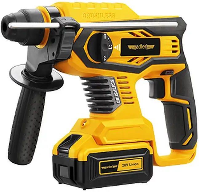 Opis produktu Młoto-wiertarka AKU-1400W posiada silnik bezszczotkowy zapewniający do 25% większy moment obrotowy niż w silniku szczotkowym. Posiada przy tym czterokrotnie większą żywotność oraz dwukrotnie większą wydajność. Wiertarka pracuje z akumulatorem 20V zapewniającym znacznie większą moc niż 18 czy 12V odpowiedniki. W AKU-1400W energia pojedyńczego uderzenia udaru to 2,2J co jest wysoką wartością pośród urządzeń akumulatorowych. Posiada 4 funkcje: wiercenie, wiercenie z udarem, podkuwanie, obracanie dłuta. Urządzenie posiada także diodę LED oświetlającą miejsce pracy, ergonomiczną dobrze wyprofilowaną rękojeść, dodatkową regulowaną przednią rękojeść oraz ogranicznik głębokości wiercenia. Akumulator posiada wskaźnik naładowania. Dane techniczne Nazwa: AKU-1400W Kod towaru: 3409.4 Bateria: 20V Li-ion 4 Ah Uchwyt wiertła: SDS+ Energia udaru: 2.2 J Obroty bez obciążenia: 0-1400 rpm Tryby pracy: wiercenie / wiercenie z udarem / kucie / obracanie dłuta Maksymalna średnica otworu w: drewnie 28 mm, metalu 10 mm, betonie 24 mm Waga netto: 2,1 kg Waga brutto: 2,9 kg 1 x Akumulatorowa Młotowiertarka AKU-1400W 1 x Akumulator Li-ion 20V-4Ah 1 x Ładowarka 1 x Walizka transportowa