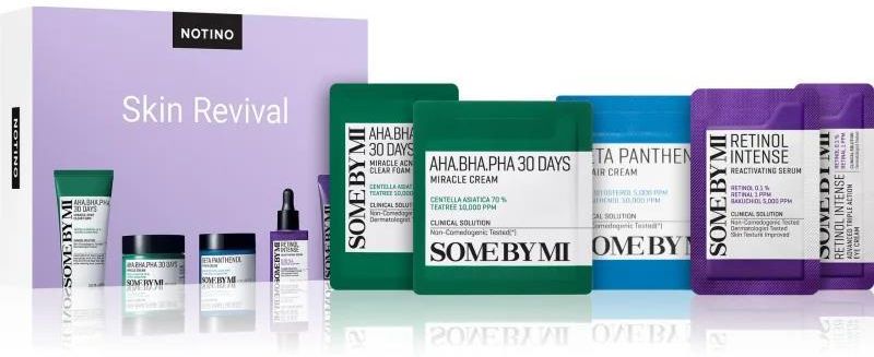 Beauty Discovery Box Notino Skin Revival, , Zestawy kosmetyków dla kobiet, Nie możesz się zdecydować, które produkty do pielęgnacji twarzy sprawią radość Tobie lub Twoim bliskim? Przygotowaliśmy dla Ciebie zestawienie najlepszych kosmetyków do twarzy! Zestaw Beauty Discovery Box Notino Skin Revival to kolekcja bestsellerów w kategorii kosmetyków pielęgnacyjnych, do wypróbowania przed decyzją o ich zakupie w pełnym rozmiarze. W zestawie znajdziesz 5 próbek różnego rodzaju produktów do pielęgnacji twarzy. Który z nich trafi idealnie w potrzeby Twojej skóry? Zawartość zestawu: Some By Mi AHA∙BHA∙PHA 30 Days Miracle pianka dogłębnie oczyszczająca do skóry z problemami 1,5 ml Some By Mi AHA∙BHA∙PHA 30 Days Miracle krem multiaktywny o działaniu uspokajającym 1,5 ml Some By Mi Retinol Intense Advanced Triple Action Eye Cream krem pod oczy nawilżający i wygładzający z retinolem 1 ml Some By Mi Retinol Intense Reactivating Serum serum przeciwzmarszczkowe z retinolem dla cery wrażliwej 1,5 ml Some By Mi Beta Panthenol Repair intensywny krem nawilżający i łagodzący regenerująca i odnawiająca skórę 1,5 ml Właściwości: do leczenia i regeneracji skóry zestaw produktów kosmetycznych do codziennego stosowania limitowana edycja produkty umożliwiają stworzenie kompleksowej pielęgnacji na co dzień