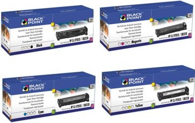 Komplet 4 tonerów marki BLACK POINT (i HP CC530A, CC531A, CC532A, CC533A) do drukarek Hewlett Packard COLOR LaserJet: - CP2025 produkt objęty DARMOWĄ DOSTAWĄ - CM2320 - CM2320n/nf 4 KOLORY CYAN/MAGENTA/YELLOW/BLACK Wydajność: BLACK - 3500 stron COLOR - 2800 stron form. A4 przy 5% pokryciu drukiem. Tonery laserowe Black Point 30 % niższa cena zakupu w stosunku do oferty producentów drukarek - Wysoka jakość, wydajność oraz pełne bezpieczeństwo użytkowania Firma produkująca markę Black Point obecna jest na rynku od 18 lat. Posiada certyfikaty jakości ISO 9001 od 2002 roku oraz certyfikat ISO 14001 od 2006r. Tonery marki Black Point testowane ze standardem pomiaru wydajności ISO 19752, czyli tym samym co produkty producentów drukarek Produkowane są z wykorzystaniem nowoczesnych urządzeń oraz wysokiej jakości nowych komponentów. Wysoka jakość wydruków potwierdzona jest referencjami od wielu zadowolonych użytkowników , a także niezależnymi testami w USA oraz w laboratorium magazynu komputerowego """"""""Chip"""""""" Pełne bezpieczeństwo użytkowania gwarantuje dożywotnia gwarancja na produkt oraz drukarkę. Program """"""""Satysfakcji Gwarantowanej"""""""" Producent Black Pointa gwarantuje, że w przypadku braku satysfakcji użytkowania produktów Black Point, przekaże do użytkownika nowy produkt. Użytkownicy produktów Black Point mają dostęp do bezpłatnej infolinii Black Point 0800 166 054