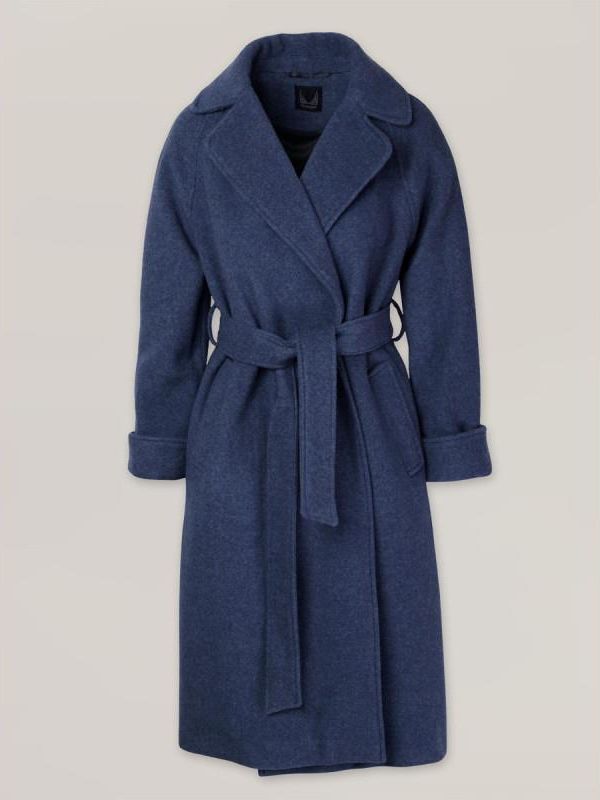Płaszcz damski Luźny, długi płaszcz damski, wiązany na pasek. Posiada gładką podszewkę z wiskozy. Kolor: ciemnoniebieski (kolor ciemny jeans) Skład płaszcza: 70% wełna, 30% poliester Skład podszewki: 100% wiskoza Jakość: pierwsza Producent: Willsoor Gwarancja: 24 m-ce Uszyto w Polsce