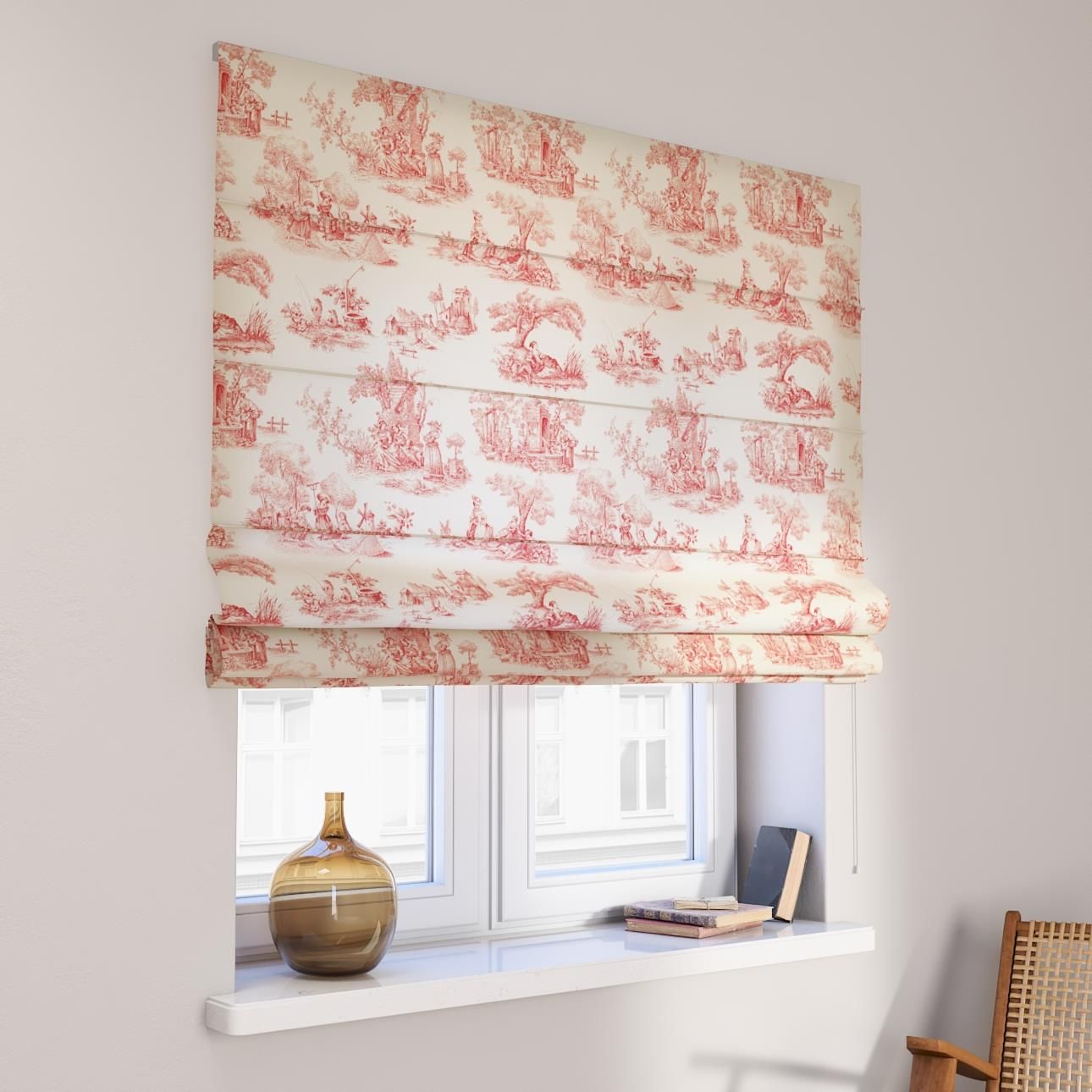 Dekoria Roleta Rzymska Capri Tło Ecru Czerwone Postacie Avinon 120X160 Cm Sobótka