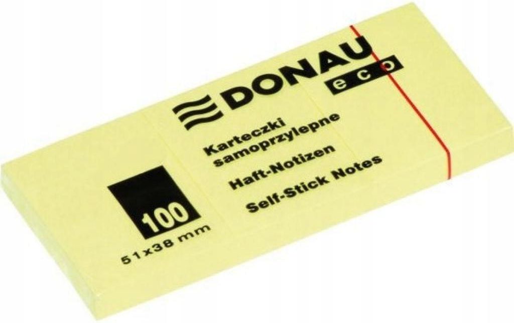 3x Karteczki samoprzylepne Donau Eco, 38x51mm, 3x 100 karteczek, jasnożółty Donau Eco Uniwersalne karteczki, w żółtym neutralnym kolorze, idealne do przekazywania wiadomości. Doskonały dla osób dbających o środowisko- wykonany z materiałów przetworzonych. Klej umieszczony wzdłuż dłuższego boku - …