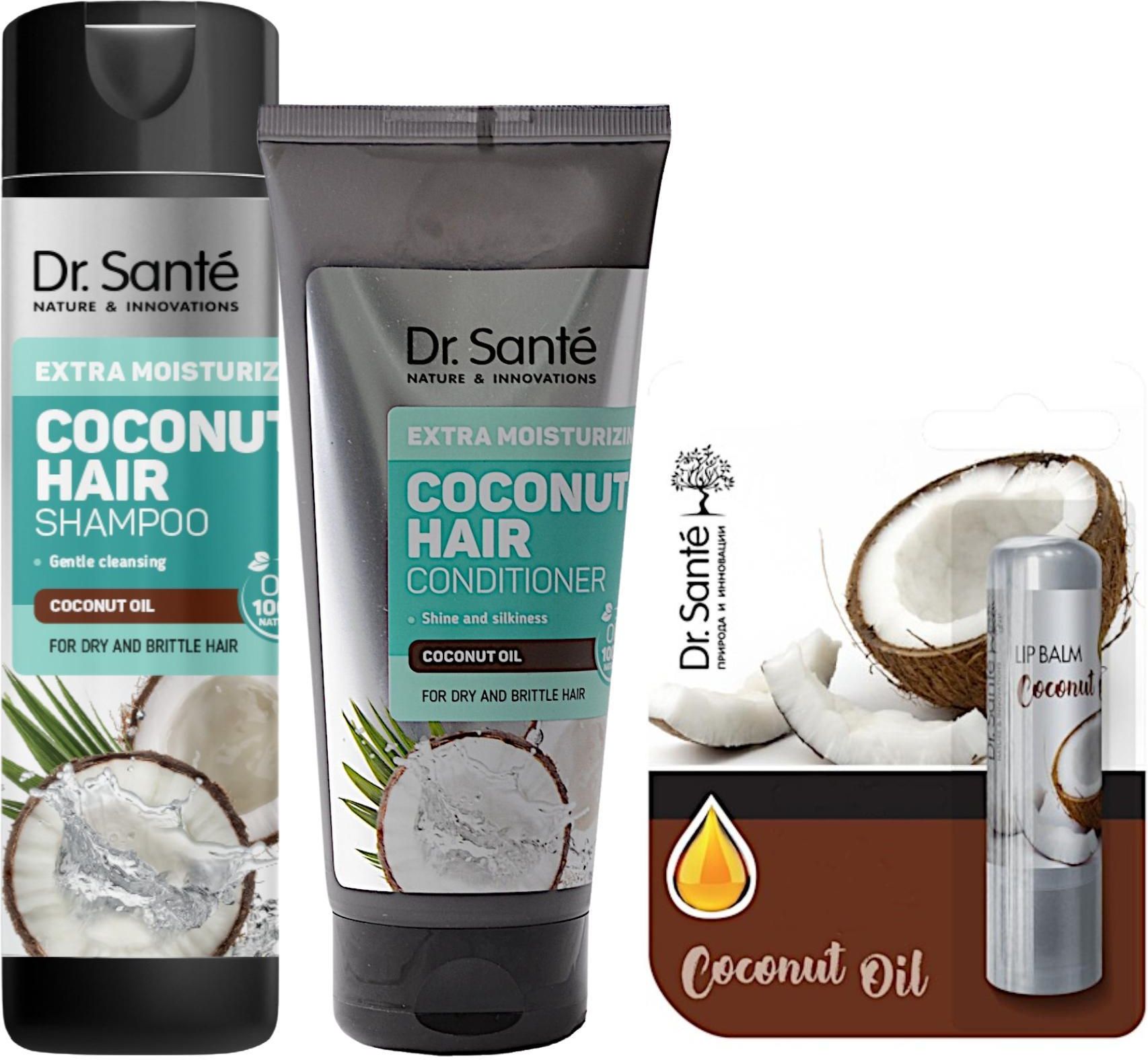 Dr. Santé Zestaw nawilżający do włosów łamliwych Coconut + balsam do ust gratis Sobótka