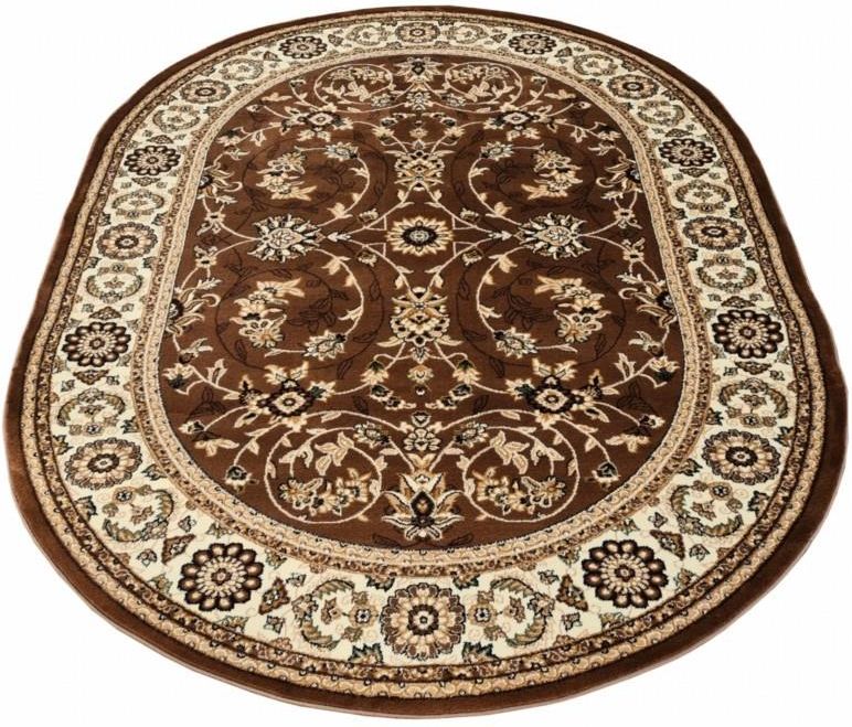 Owalny dywan tradycyjny ORIENT to piękny dywan nawiązujący do wzornictwa orientalnego i tureckiego Dywany orientalne i dywany tureckie wyróżniają się głównie obfitym zdobieniem motywami florystycznymi i ornamentami i gęstym, miękkim i krótkim runem. Pasują idealnie do wnętrz urządzonych w klasycznym stylu – świetnie prezentują się zwłaszcza z masywnymi meblami drewnianymi. Klasyczny dywan został wykonany w technice soft heat set. Do jego produkcji wykorzystano wysokiej jakości przędzę polipropylenową poddaną uszlachetnieniu przez termiczną stabilizację. Włókna wyróżniają się wyjątkową miękkością, runo jest gęste, dlatego dywan ten do złudzenia przypomina wełniany. Nie elektryzuje się, ma właściwości izolujące – akustyczne i termiczne, można łatwo czyścić go przez odkurzanie i pranie szamponami przeznaczonymi do dywanów. Jednocześnie zachowuje wysoką wytrzymałość, trwałość i odporność na zagniecenia, dlatego będzie przez długi czas ozdobą pokoju. Prezentowany dywan jest dostępny w pełnej gamie rozmiarów, dlatego mogą dopasować go Państwo do wymiarów wnętrza.