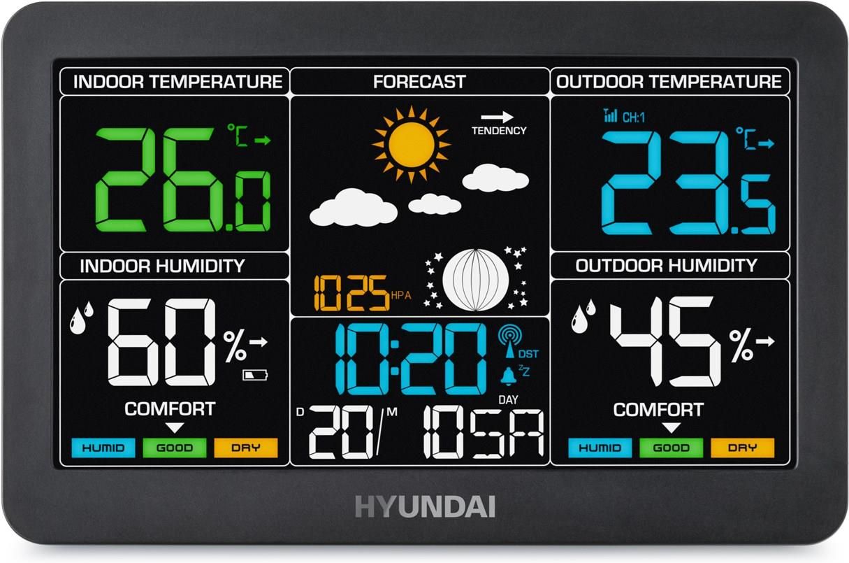 HYUNDAI WS4480 | STACJA POGODY | TEMPERATURA & WILGOTNOŚĆ (WEW./ZEW.) | BAROMETR | FAZY KSIĘŻYCA | ALERTY POGODOWE | ANIMOWANA PROGNOZA Autoryzowany dystrybutor HYUNDAI w Polsce 20 lat doświadczenia | ✔️ Polska instrukcja | ✔️ Serwis door-to-door Jesteśmy oficjalnym dystrybutorem i serwisantem marki HYUNDAI w Polsce. Kupując od nas masz pewność jakości i obsługi serwisowej. Kupujesz bezpośrednio od polskiego dystrybutora marki. Hyundai WS4480 – precyzyjna kontrola warunków pogodowych Stacja pogody Hyundai WS4480 to funkcjonalne, domowe centrum pomiarowe, które zapewnia dokładne dane o temperaturze, wilgotności, ciśnieniu atmosferycznym oraz prognozie pogody. Urządzenie umożliwia obsługę nawet trzech czujników zewnętrznych i prezentuje czytelne informacje na dużym ekranie z animowanymi ikonami. Co wyróżnia Hyundai WS4480? Pomiar temperatury i wilgotności – wewnętrznej i zewnętrznej Współpraca z 3 czujnikami bezprzewodowymi (HYUWSSENZOR825) Barometr z wykresem zmian ciśnienia Animowana prognoza pogody Fazy Księżyca Alerty temperaturowe i wilgotnościowe Min./maks. wartości pomiarów Zegar sterowany sygnałem DCF77 – maksymalna dokładność Budzik + kalendarz wbudowany w jednostkę główną Zasilanie sieciowe + tryb awaryjny na baterie Najważniejsze funkcje stacji pogodowej Dokładny pomiar temperatury i wilgotności Stacja stale monitoruje warunki wewnątrz i na zewnątrz, a także zapisuje wartości minimalne i maksymalne dla łatwego porównania. Barometr z prognostyką pogody Zintegrowany barometr analizuje zmiany ciśnienia, pomagając rozpoznać nadchodzące zmiany w pogodzie, np. opady czy ochłodzenie. Fazy Księżyca Wyświetlane są aktualne fazy Księżyca – przydatne dla miłośników astronomii czy ogrodnictwa. Inteligentne alerty pogodowe Możliwość ustawienia alarmów dotyczących: zbyt niskiej temperatury (np. przymrozki), zbyt wysokiej temperatury, wysokiej lub niskiej wilgotności. Obsługa trzech czujników zewnętrznych Monitoruj jednocześnie ogród, garaż lub inne pomieszczenia. Stacja automatycznie wyświetla pomiary z każdego z nich. Komfort i bezpieczeństwo Czytelny wyświetlacz z animowaną prognozą Stabilne połączenie radiowe z czujnikami Automatyczna synchronizacja czasu DCF77 Przejrzysty układ ekranu i intuicyjna obsługa Alarm oraz funkcja drzemki Zestaw zawiera Jednostka główna Hyundai WS4480 Zasilacz sieciowy Instrukcja obsługi PL (Czujnik zewnętrzny sprzedawany oddzielnie – kompatybilny HYUWSSENZOR825) Parametry techniczne Pomiar temperatury: wewnętrzna / zewnętrzna Pomiar wilgotności: wewnętrzna / zewnętrzna Barometr: tak Fazy Księżyca: tak Prognoza pogody: animowana Czujniki zewnętrzne: obsługa do 3 szt. Zegar: radiowy DCF77 Alarm / budzik: tak Zasilanie jednostki głównej: zasilacz sieciowy + 3× AAA (podtrzymanie) Łączność czujników: bezprzewodowa