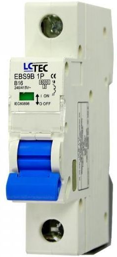 Wyłącznik nadprądowy B 6A 1P 6kA EBS9B LC-Tec. Wyłączniki nadprądowe przeznaczone są do zabezpieczania obwodów elektrycznych przez skutkami przeciążeń i zwarć w instalacjach 1-fazowych. Eska EBS9B posiada charakterystykę czasową B oraz prąd znamionowy 6A. Posiada znamionową zdolność zwarciową 6kA. Najważniejszą zaletą wyłączników nadmiarowo-prądowych w przeciwieństwie do tradycyjnych wkładek bezpiecznikowych - jest możliwość wielokrotnego ich użycia. O przewadze nad wkładkami topikowymi decyduje również wysoka czułość działania. Możliwość plombowania w pozycji ZAŁ/WYŁ. Wyłącznik instalacyjny B 6A LC-Tec to eska 1-polowa, do montażu na szynie TH-35. Model 1-biegunowy, maksymalny przekrój przewodów 25mm2. Wyłącznik instalacyjny B6 może być montowany wyłącznie przez osoby uprawione. Przed jego montażem konieczne jest odłączenie elektryki. Producent daje 5 lat gwarancji na wyłączniki nadprądowe serii EBS9B. Dane szczegółowe producenta znaleźć można TUTAJ UWAGA! Zdjęcie jedynie poglądowe.