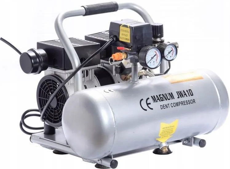 Sprężarka bezolejowa dedykowana do zastosowań medycznych i stomatologicznych. Ciche i niezawodne źródło sprężonego powietrza. Wydajna i cicha bezolejowa pompa oraz aluminiowy zbiornik gwarantują czystość sprężonego powietrza. DANE TECHNICZNE Moc: 400 W Wydajność: 89 l/min Poziom hałasu: 62 dB Maksymalne ciśnienie: 8 bar Wielkość zbiornika: 10 l Wymiary: 43x37x36 cm Masa: 14 kg