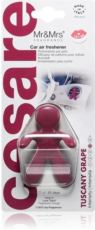Mr & Mrs Fragrance Cesare Tuscany Grape, 1 szt., Zapachy do samochodu Zapachy do domu, Zapach do samochodu Mr & Mrs Fragrance Cesare Tuscany Grape zmieni Twoje podróże w niezapomniane przeżycie. Doda przytulności wnętrzu każdego samochodu, napełni przyjemnym zapachem, wywołując wrażenie harmonii. Właściwości: owocowy zapach słodki aromat