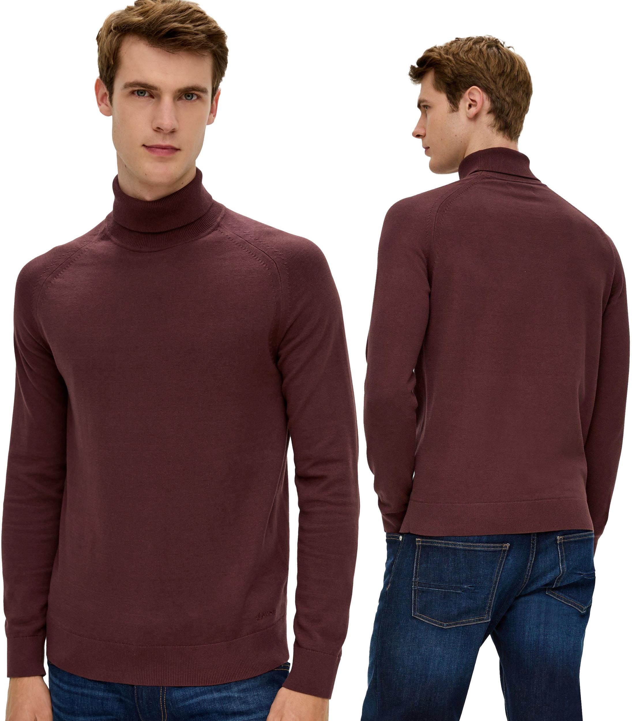Sweter golf męski s.Oliver bordowy - XXLInformacje o produkcie: Sweter golf męski s.Oliver kolor: bordowy prążkowane mankiety i dół kołnierz: golf Dopasowanie: Regular Fit Materiał: 100% bawełna