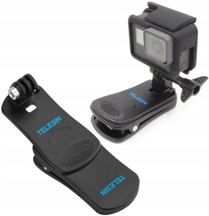 Klips / Uchwyt Obrotowy Uniwersalny, dedykowany do większości kamer sportowych GoPro / SJCAM / Ekar / DJ Action / Xiaomi Bardzo solidna i wytrzymała konstrukcja z ABS Możliwość obracania klipsa z zamontowaną kamerą w zakresie 360 stopni Klips jest lekki, waży zaledwie 60 g. Zacisk uchwytu jest bardzo mocny Produkt firmy TELESIN Model: GP-JFM-003 Uchwyt pozwala na mocowanie kamer sportowych na wszelkiego rodzaju płaskich elementach. Uchwyt działa na zasadzie klipsa, z tym że specjalne sprężynowe mocowanie sprawia, że zacisk uchwytu jest znacznie mocniejszy, niż w standardowych klipsach. Kamerę umieszcza się w systemowym mocowaniu typu GoPro, a następnie klips zapina się w dowolnym miejscu, gdzie tylko chcemy i jest taka możliwość. Solidna konstrukcja klipsa, gwarantuje pewne i stabilne zamocowanie kamer sportowych na wszelkiego rodzaju paskach, szelkach, paskach od plecaka, itp. Maksymalna rozpiętość klipsa wynosi 4 cm. Klips posiada specjalną "ząbkową" część zatrzaskową, która gwarantuje bardzo mocne przywieranie do powierzchni, zapewniając wysokie siły tarcia, które zapobiegają wyślizgnięciu się klipsa w nawet trudnych warunkach. Możesz mieć pewność, że Twoja kamera sportowa przypięta do plecaka nie poruszy się, ani nie spadnie. Klips został wykonany z wysokiej jakości materiałów, jest bardzo solidny oraz trwały. Klips o składanej konstrukcji, posiada obrotową płytkę w zakresie 360 stopni. Dzięki temu możesz ustawić kamerę w dowolnym położeniu. Obrót w zakresie 360° pozwala "złapać" atrakcyjne ujęcia i tworzyć filmy z oryginalnej perspektywy, bez żadnych ograniczeń, z dostosowaniem kierunku nagrywania zgodnego z Twoim zamysłem. Specyfikacja Waga: 60 g Materiał wykonania: ABS + Metal Konstrukcja: Składana Obrót: 360 stopni W zestawie Uchwyt z obrotową płytką Uwaga: Brak śruby mocującej Uchwyt pasuje m.in. do kamer sportowych GoPro / SCJAM / Xiaomi / DJI OSMO ACTION GoPro Hero GoPro Hero 2 GoPro Hero 3 GoPro Hero 3+ GoPro Hero 4 GoPro Hero 4 Session GoPro Hero + GoPro Hero 5 GoPro Hero 5 Black GoPro Hero 5 Session GoPro Hero 6 GoPro Hero 6 Black GoPro Hero 7 Black GoPro Hero 7 Silver GoPro Hero 7 White GoPro Hero 8 Black GOPro Hero 9 Black GoPro Hero 10 Black GoPro Hero 11 Black GoPro MAX SJCAM SJ7000+ SJCAM SJ6000+ SJCAM SJ7000 SJCAM SJ6000 SJCAM SJ5000plus SJCAM SJ5000wifi SJCAM SJ5000 SJCAM SJ4000 Wifi SJCAM SJ4000 SJCAM SJ6 LEGEND Xiaomi / Xiaoyi Yi / Yi 2 4K / Yi 4K Lite Xiaomi MIJIA 4K DJI OSMO ACTION DJI action 2 Insta360 One R, GO Lamax W9.1 W9 X10.1 X9.1 X10 X8.1 X7.1 X3.1 Xblitz Move 4K+ (Plus), Action 4K Eken H9R, H9, H9S, H8R, H6S, H5S
